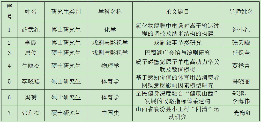 附名单:304永利集团官网入口2018年省优秀博士、硕士学位论文汇总表