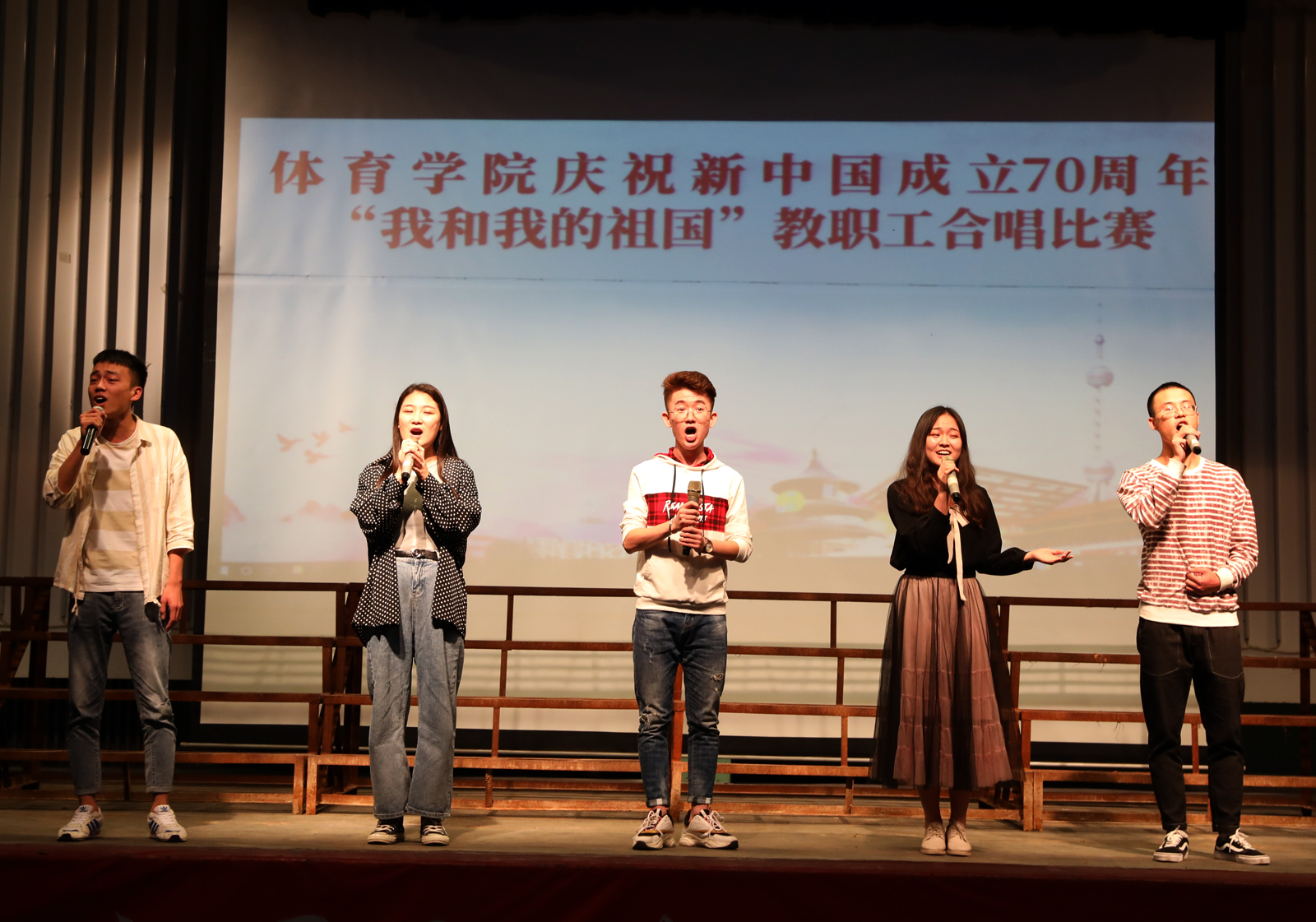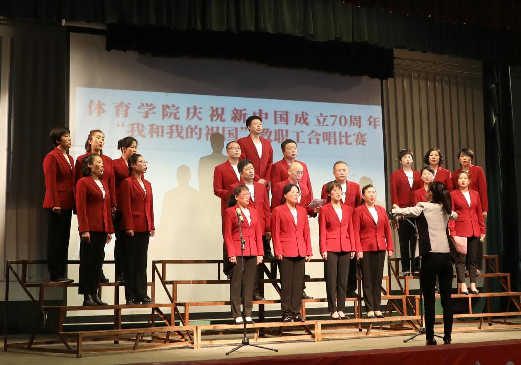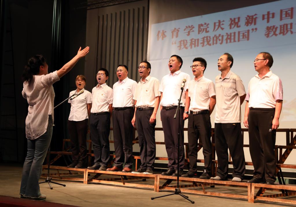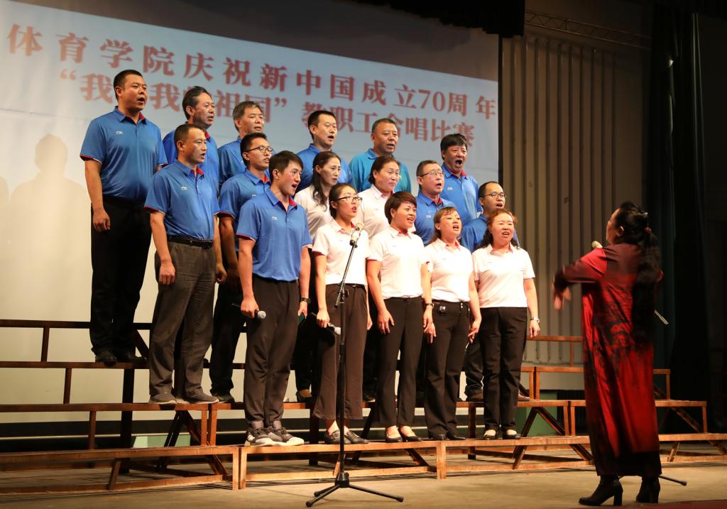全院教职工共分为7支代表队参加比赛,分别为院机关代表队、公共体育部代表队、体育教育系代表队、社会体育系代表队、武术与民族传统体育系代表队、运动训练系代表队、体育教育二系代表队,比赛曲目为《我和我的祖国》、《团结就是力量》。