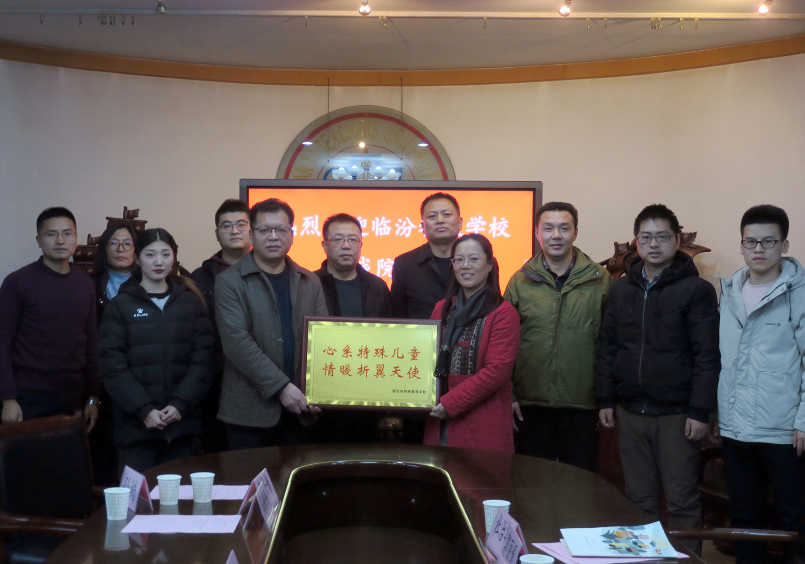 许国宝对临汾特教公司一行人的到来表示热烈欢迎,并介绍公司的基本情况。他强调要进一步加强老员工服务社会的能力,积极倡导老员工参加社会实践活动,以“不忘初心、牢记使命”主题教育为契机,进一步落实好“立德树人”的根本任务,不断增强基层党建的引领作用,打造品牌活动,形成特色。最后,特教公司向公司赠送牌匾并合影留念。(闫培烨/文)