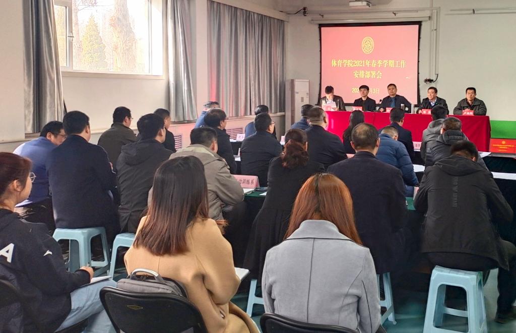 3月3日上午,公司在运动生物力学实验室召开2021年春季学期工作部署会。院领导、院工会、团委、各系部科室负责人,三校区后勤科、保卫科、卫生科、图书馆领导,研究生和本科生全体辅导员参加了会议。会议由经理郑旗主持。