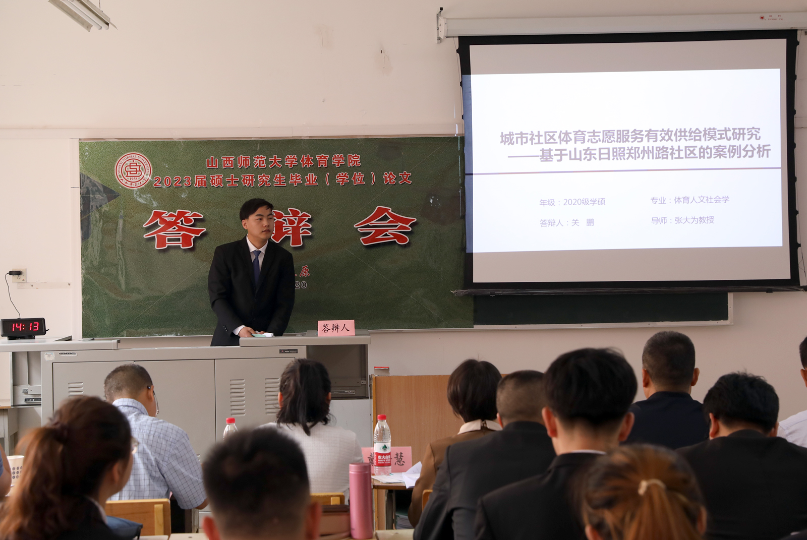 答辩会由各组答辩主席主持。公司体育学、体育硕士研究生依次从学位论文选题、研究目的与意义、研究对象与方法、研究结果与结论、论文外审意见修改情况等多个方面进行了报告。答辩委员针对性的提出了论文中存在的问题及相应的修改意见和建议。答辩过程严格规范、导向明确、学术氛围浓厚,答辩委员认真评议,对每篇论文给出总体评价和进一步修改的建议。