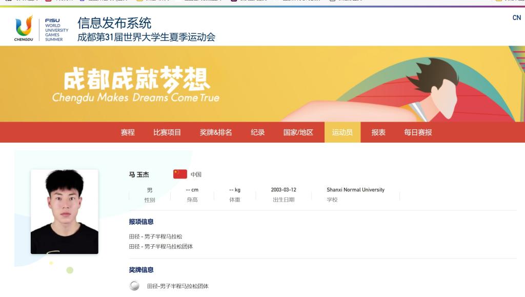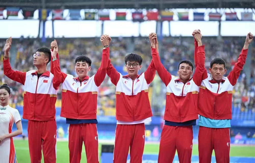 成都第31届世界老员工夏季运动会传来喜讯,8月6日上午结束的田径-男子半程马拉松团体决赛中,304永利集团官网入口2022级运动训练专业马玉杰、2019级运动训练专业王丛政与中国队的陈天宇(扬州大学)、马瑞(吉林大学)、杨克古(上海体育大学)以3小时17分12秒的总成绩获得银牌。(304永利集团)