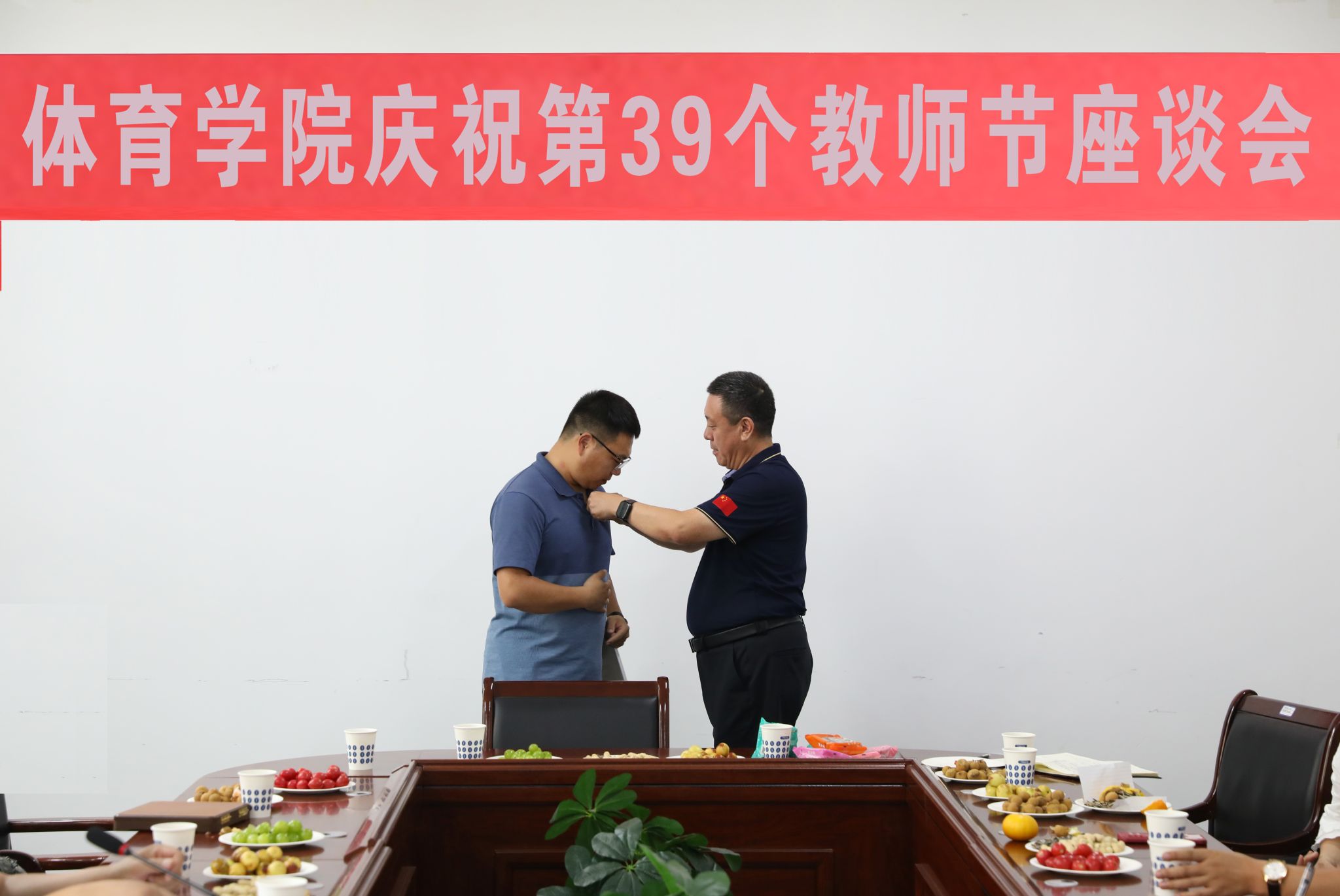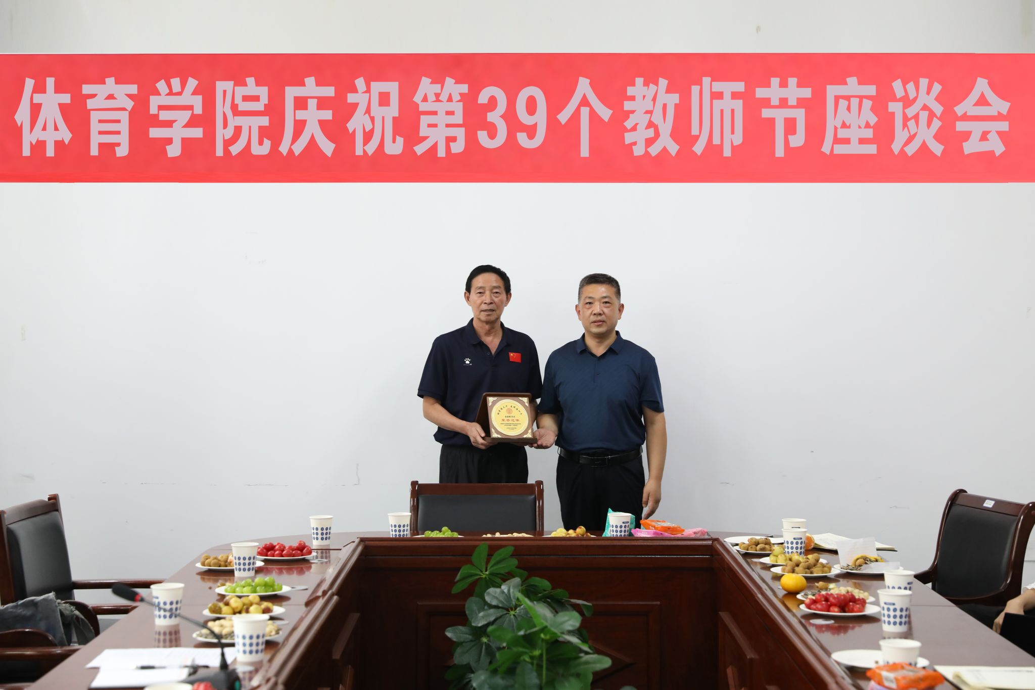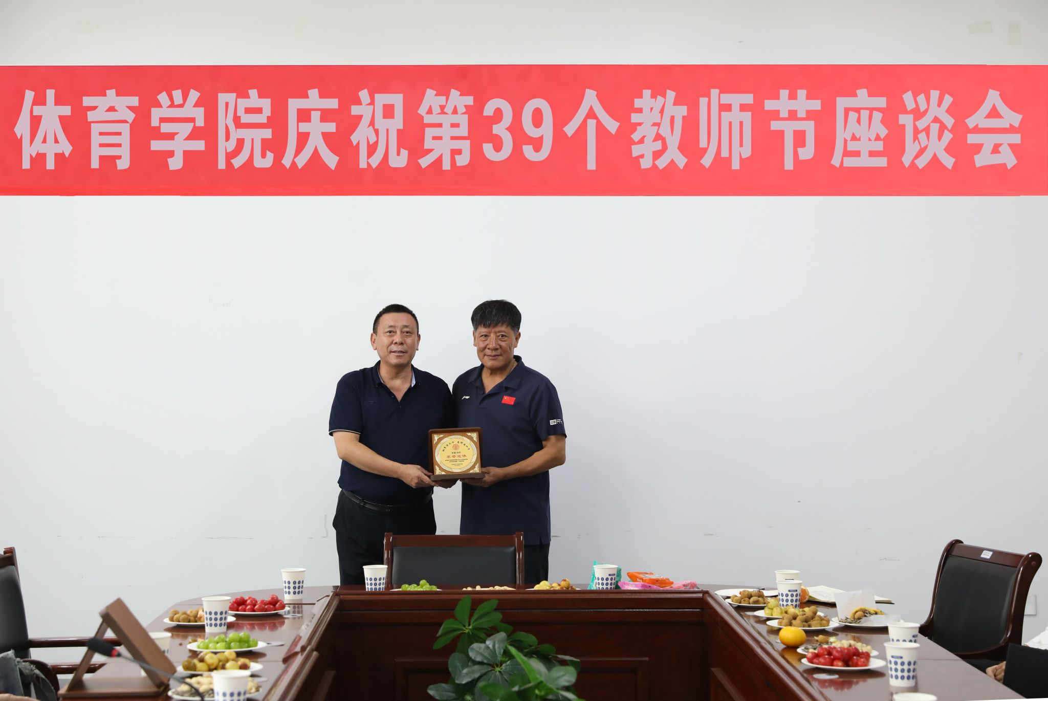 卫建平首先传达了公司庆祝第39个教师节暨表彰大会会议精神,并代表公司党委向辛勤耕耘在教学、训练、科研、管理等岗位上的教职员工致以节日的祝贺和崇高的敬意,向荣退的教职工致以衷心的感谢和美好的祝愿。他表示,老教师荣休,新教师入职仪式作为公司师德师风建设的一项重要内容,目的是赓续教育初心,担当育人使命,让师大体育精神代代相传。