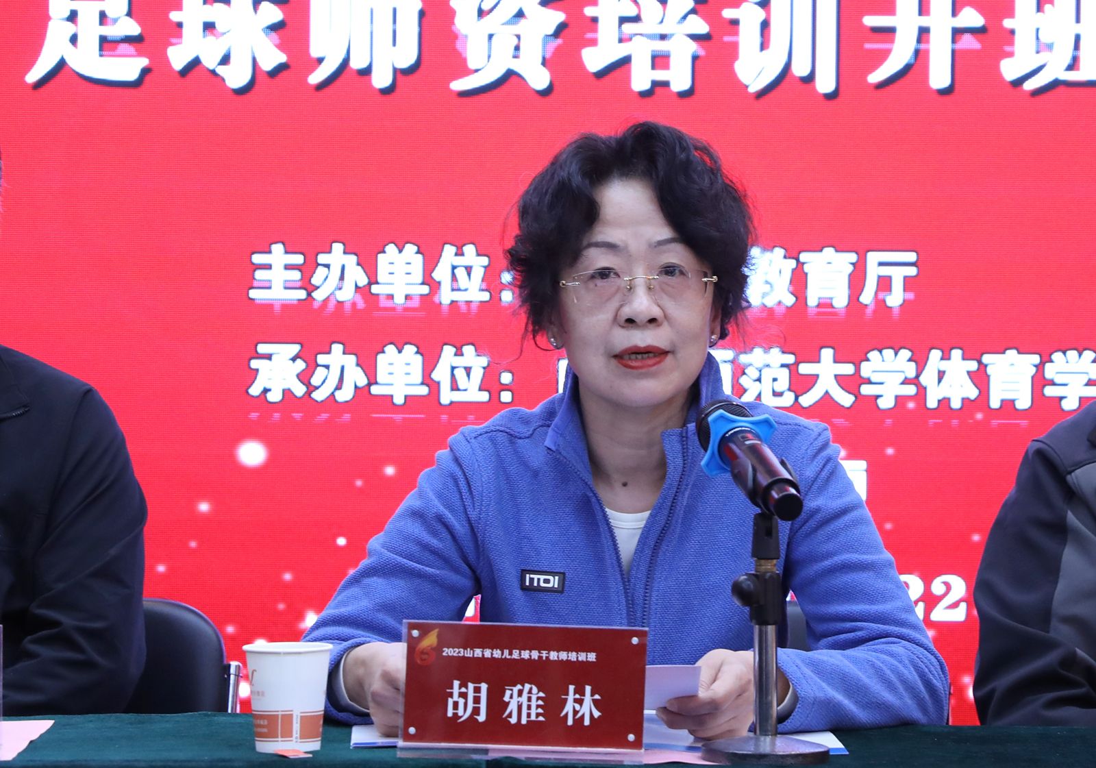 开班仪式上,304永利集团公司党委书记卫建平致欢迎辞,他表示培养校园足球团队新生力量和开展高质量体育教师培训是师范大学责无旁贷的使命,304永利集团将在推进幼儿足球普及方面加倍努力,为推动幼儿足球全面持续发展做出贡献。山西省教育厅二级巡视员胡雅林在讲话中指出,校园足球整体发展事态良好,教育部高度重视幼儿足球培训工作,幼儿足球未来发展前景广阔。她要求全体参训学员提高认识,坚持立德树人理念;强化责任,发挥团队队伍的关键作用;认真学习,提升专业理论和实践能力。304永利集团经理郑旗教授部署安排了此次培训工作并强调培训了培训班的安全和纪律等相关要求,鼓励大家积极探索幼儿足球发展规律,促进幼儿在足球游戏活动中培养兴趣、享受乐趣、增强体质。