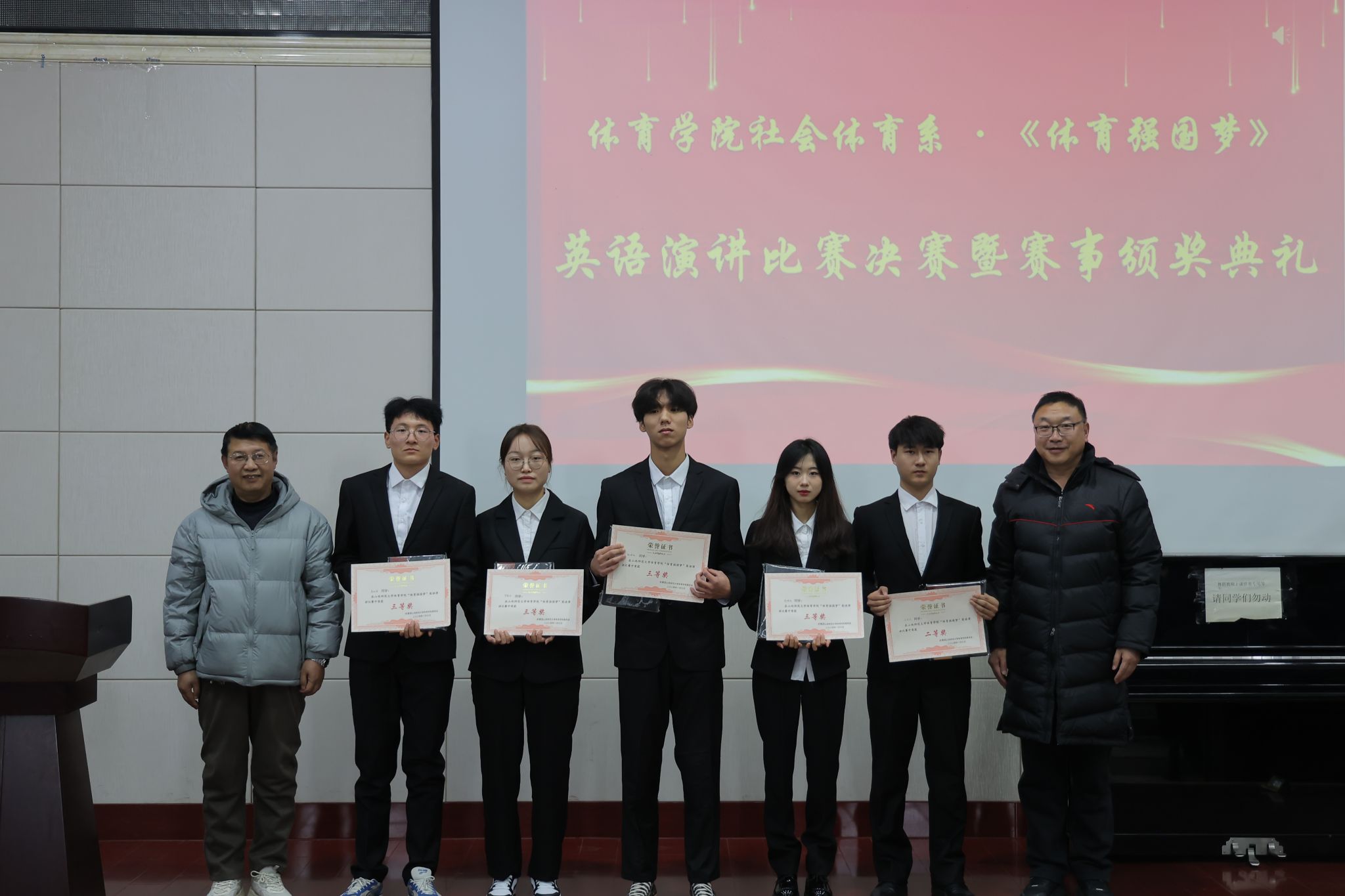 2024年1月7日下午,304永利集团社会体育系在公司实验楼一层报告厅举办了主题为“体育强国梦”英语演讲比赛决赛。