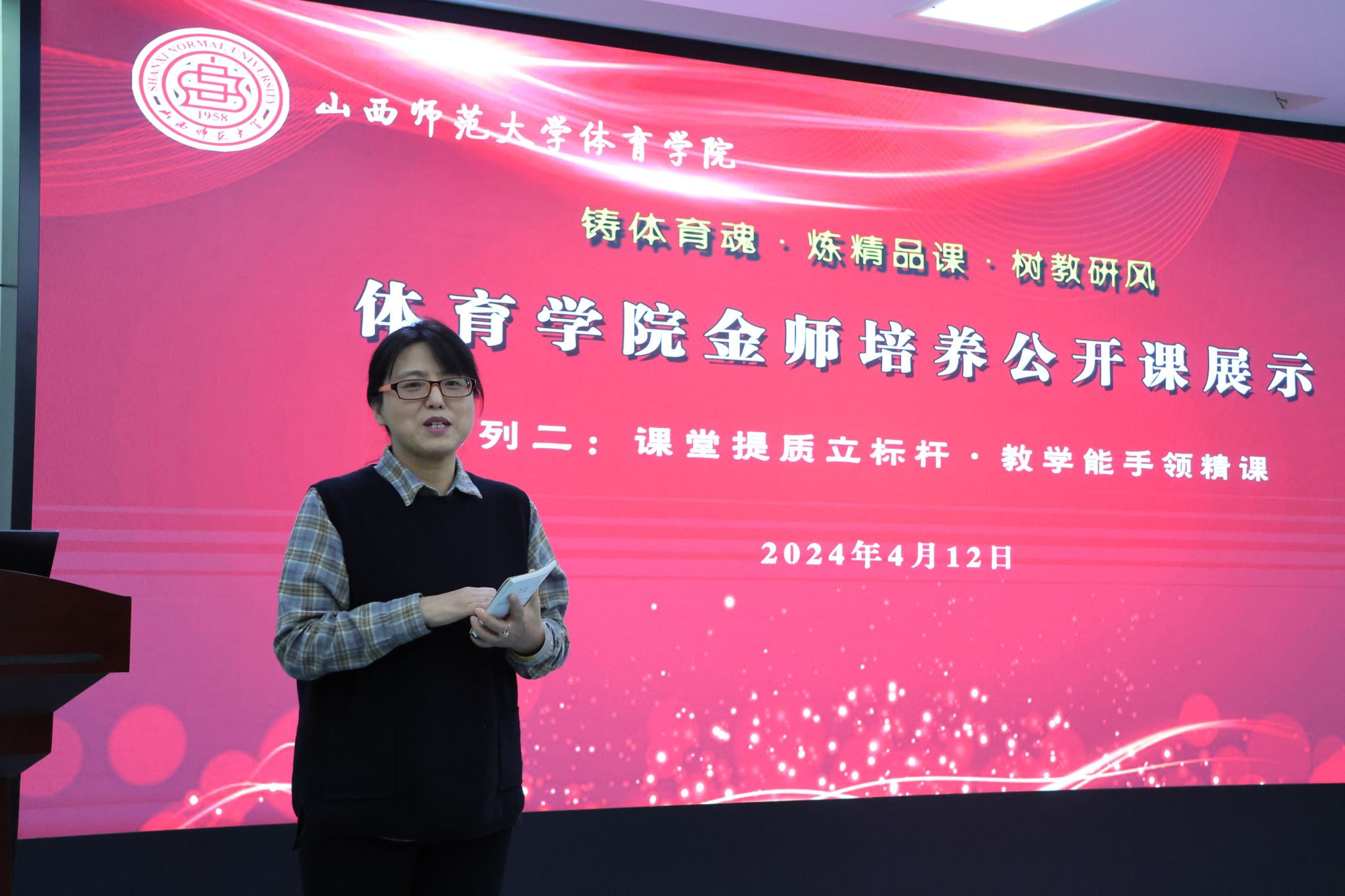 “课堂提质立标杆.教学能手领精课”系列(二)在本周拉开了序幕,第一期展示于2024年4月12日下午2点在南区图书馆展开。公开课主讲教师为运动训练系郭丽娟副教授,曾获得校级青年教师教学竞赛一等奖、健美操国家级裁判、国家级社会体育指导员,主讲课程为《健美操团课指导技巧-提示技巧》。公司教学督导委员会委员,生命科学公司胡青平教授、304永利集团领导、全体教师、部分员工观摩了此次公开课。