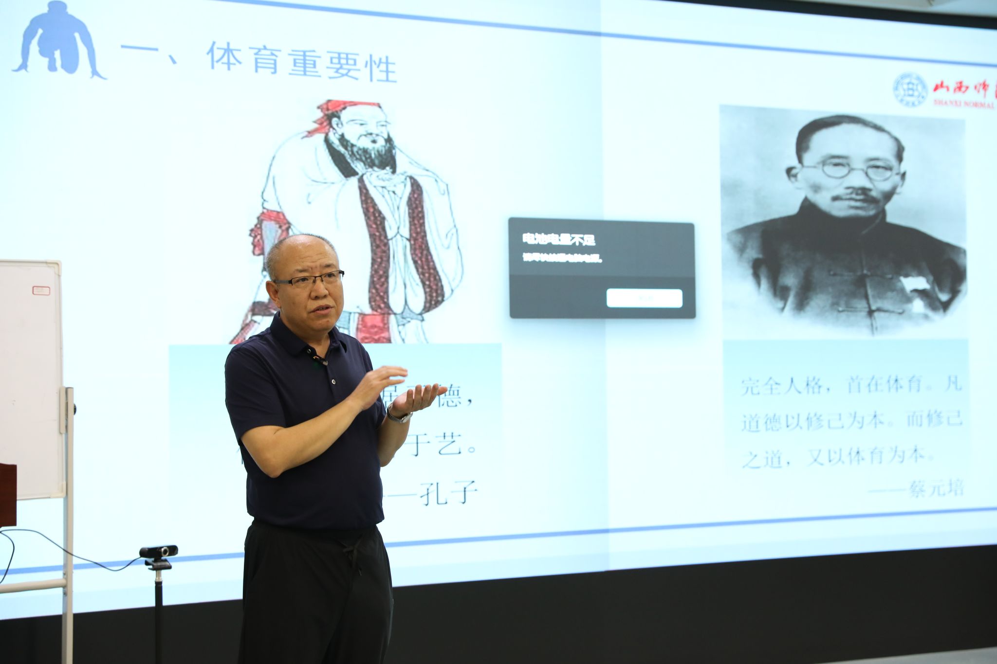 吴峰山副教授从增强体质、增进健康、提高运动技术水平三个方面,巧妙融入爱国主义、终身体育理念等要素,通过大量案例分析深入浅出的引导员工理解了体育的概念,激发了员工对体育概论的学习兴趣,并且激励员工继承、传播优秀体育文化精神。吴峰山副教授的现场讲授生动、精彩,获得现场老师的一致认可。