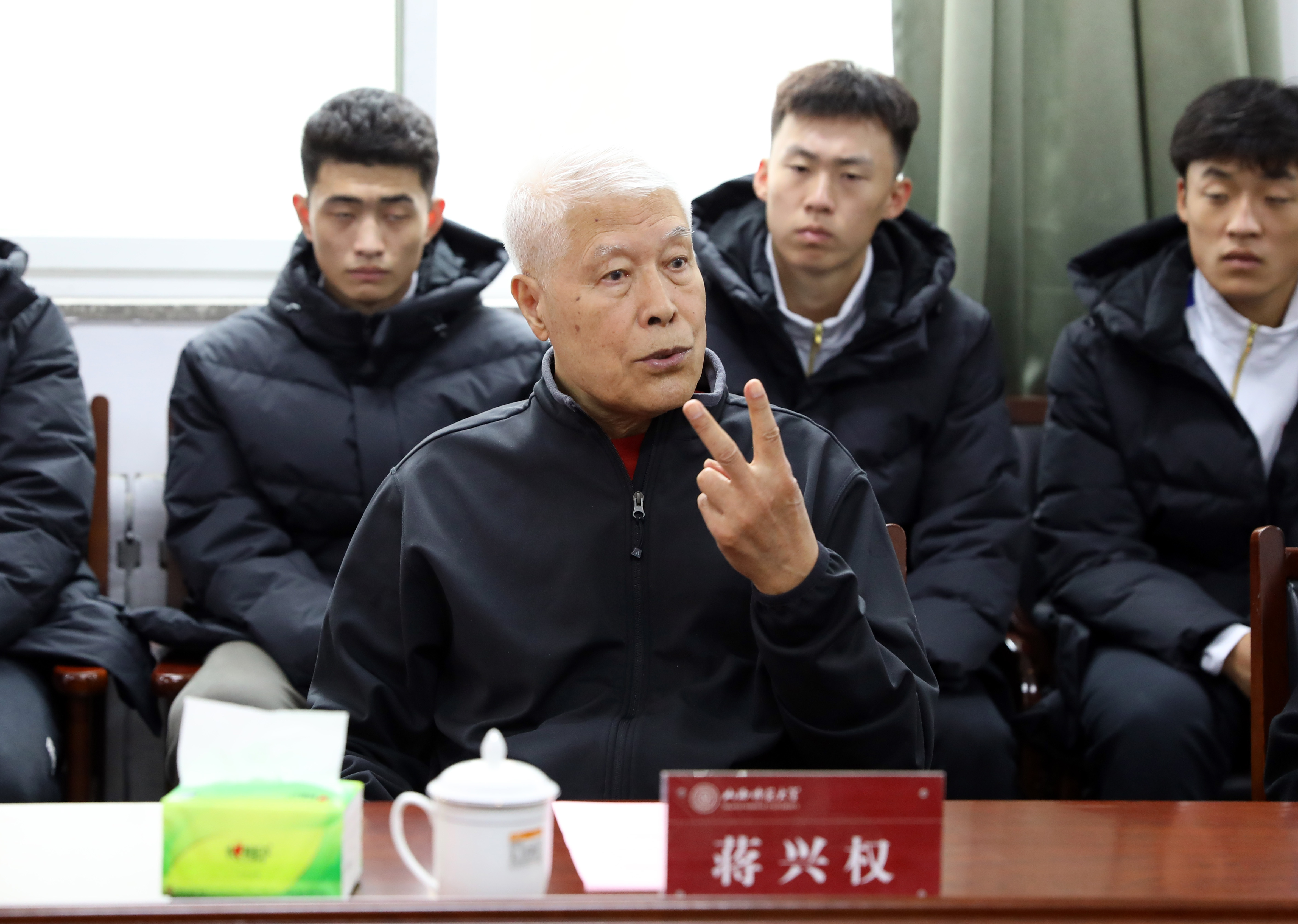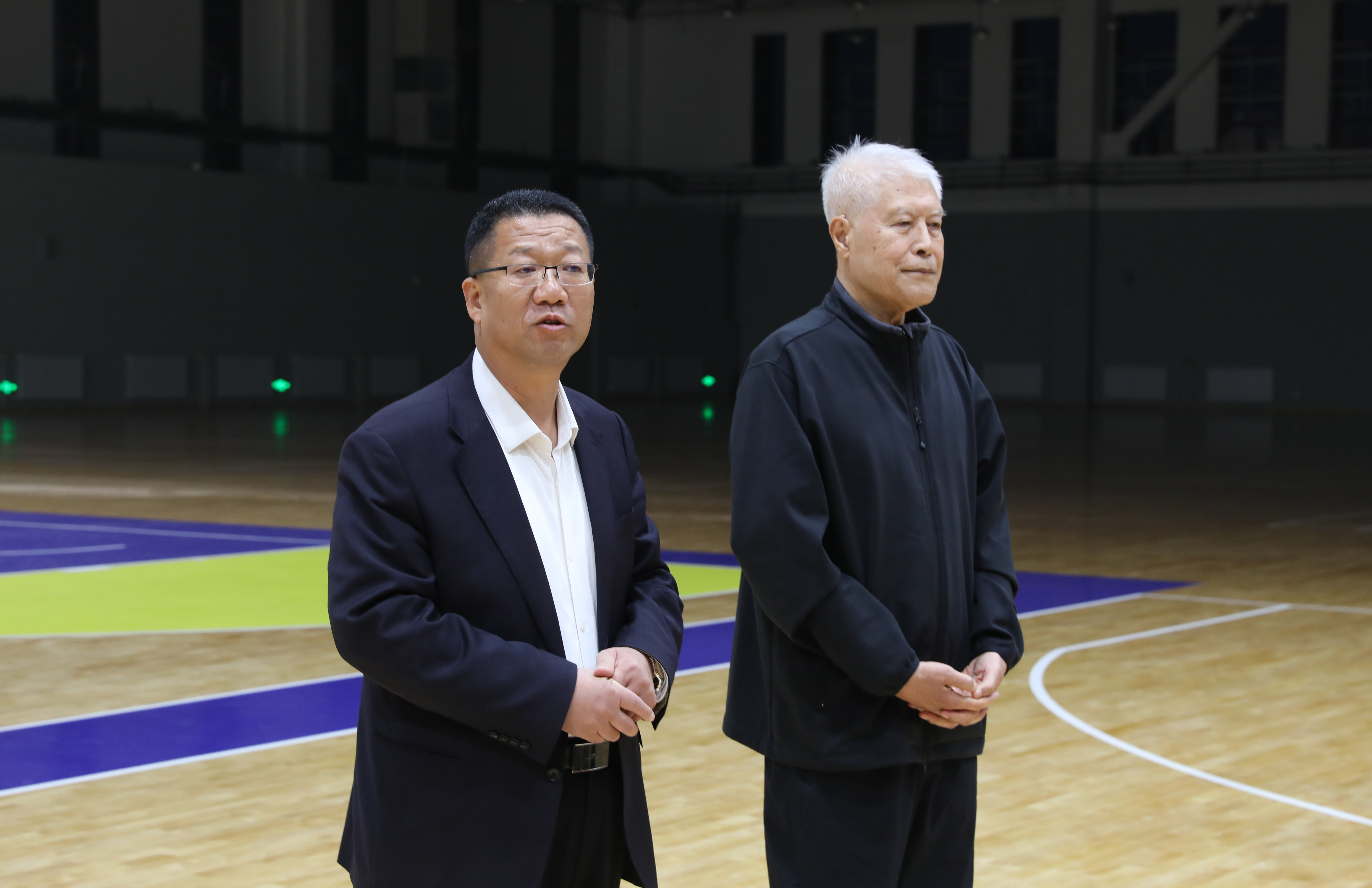 座谈会伊始,304永利集团经理王彤向大家隆重介绍了蒋兴权教练。蒋兴权教练在中国篮球界的地位举足轻重,他的执教生涯充满了辉煌与荣耀,被誉为“中国篮坛教父”执教 50 余载,培养了诸多国手与教练。王彤还详细介绍了公司的发展历程、团队力量以及在篮球教学、训练方面所取得的成绩与面临的挑战。