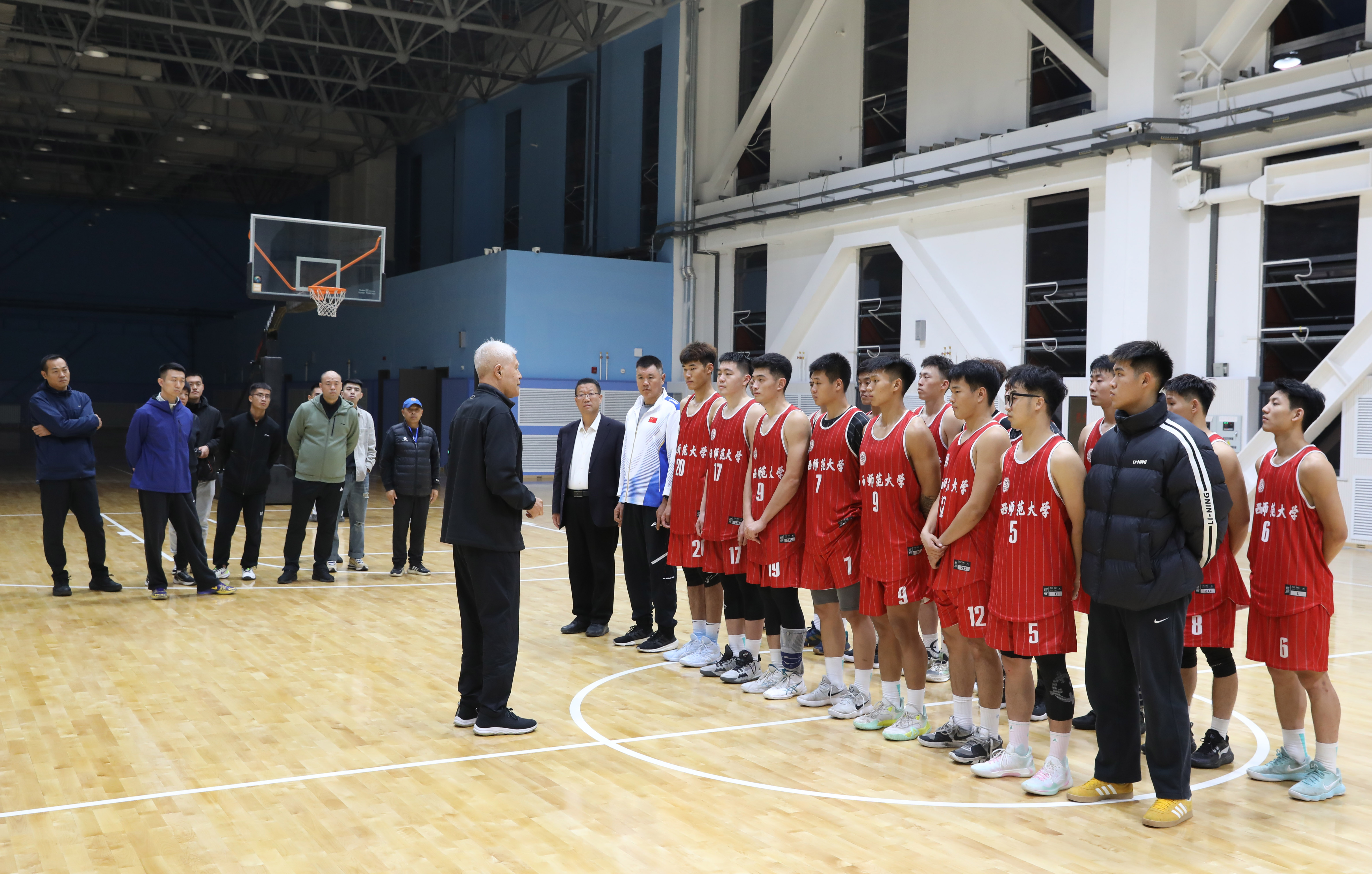 随后,蒋兴权教练为304永利集团的篮球教学、训练工作“把脉问诊”。他结合自己丰富的执教经验,深入浅出地分析了当前篮球教学与训练的现状。蒋教练强调,篮球教学不仅要注重技术的传授,更要培养员工的篮球意识和团队精神。他指出,在训练中,要根据员工的个体差异制定个性化的训练方案,因材施教,激发员工的潜力。同时,蒋教练还分享了自己在执教过程中的一些经典案例,让在场的师生们深受启发。