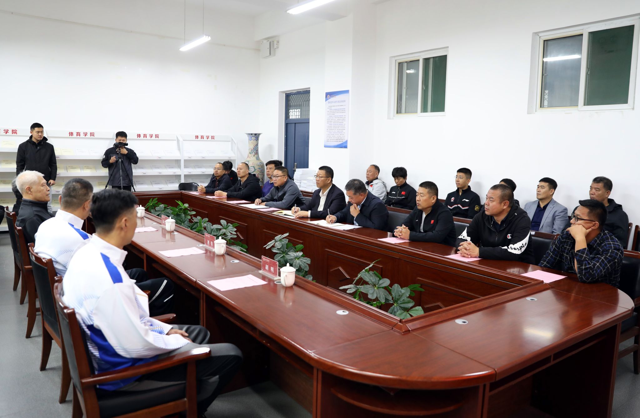 2024 年 10 月 17 日上午 10 时,304永利集团迎来了一位篮球界的传奇人物——蒋兴权教练。在304永利集团二层会议室,一场关于篮球教学、训练工作的座谈会如火如荼地展开。院领导、各系部负责人、篮球专业教师代表、男篮教练员以及男篮队员代表齐聚一堂,共同期待着蒋兴权教练为公司的篮球教学、训练工作带来新的启示。座谈会由公司党委书记卫建平主持。