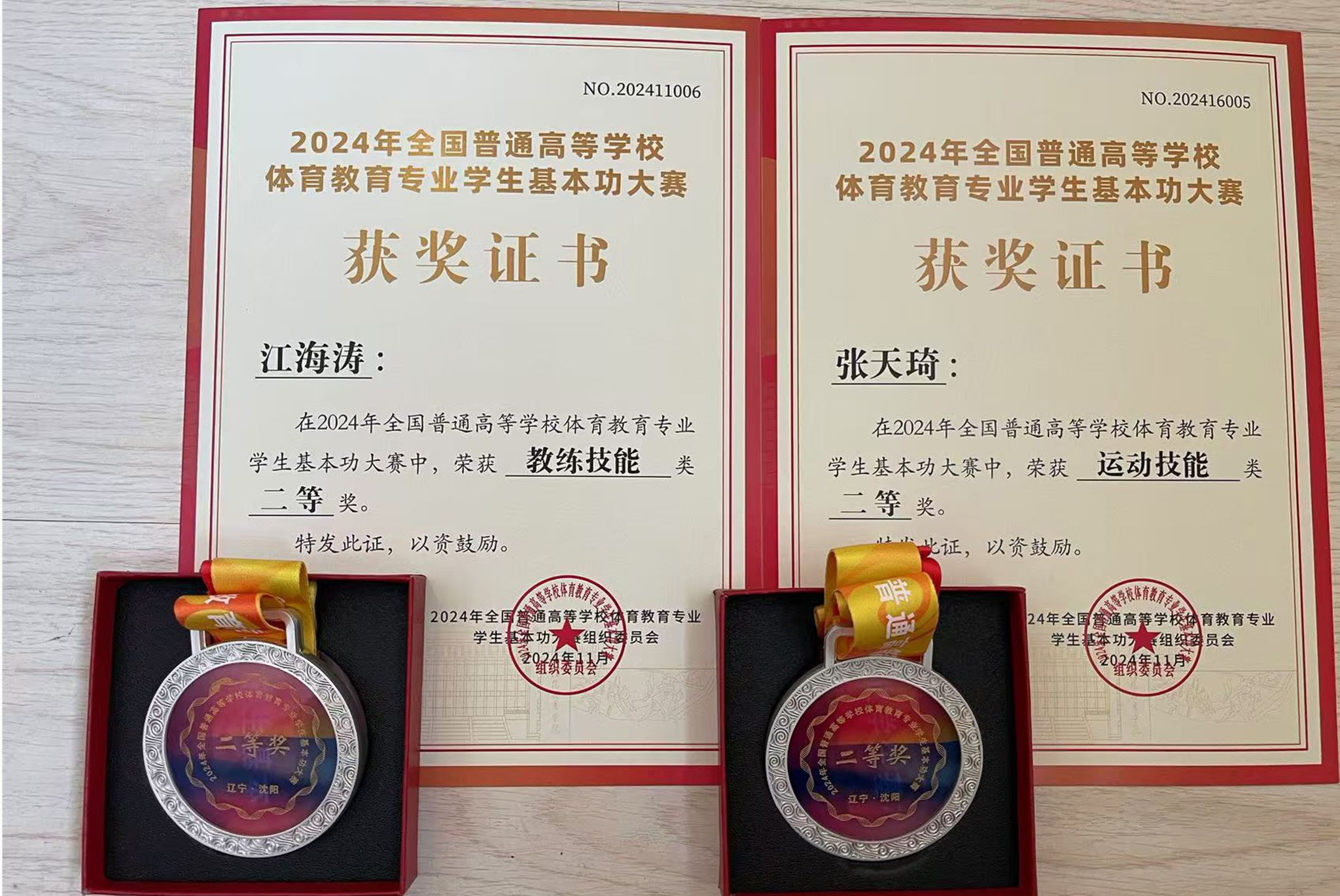 2024年11月11日——15日,公司体育教育系员工参加了在沈阳304永利集团举行“全国普通高等公司体育教育专业员工基本功大赛”,此次比赛由教育部体育卫生与艺术教育司主办,辽宁省教育厅、沈阳304永利集团、全国高等公司304永利集团产品指导委员会承办、中国教育科学研究院协办。此次比赛全国共有87所高校参加,348名运动员报名参赛。自10月接到山西省教育厅的比赛通知以来,院领导高度重视,积极动员,精心组织,由郭丽娟担任负责人,张杰担任领队,许登云、沈军担任教练,成立指导教师团队,分别对四名员工进行《体育概论》《运动解剖学》《运动生理学》《体育心理学》《健康教育学》理论知识学习、广播操培训,足球、篮球、排球以及田径等的运动技能训练、教学技能设计以及教练技能培训,经过艰苦训练、考核和参赛,最终,公司体育教育系2021级员工江海涛荣获教练员技能类二等奖,张天琦荣获运动技能类二等奖。
