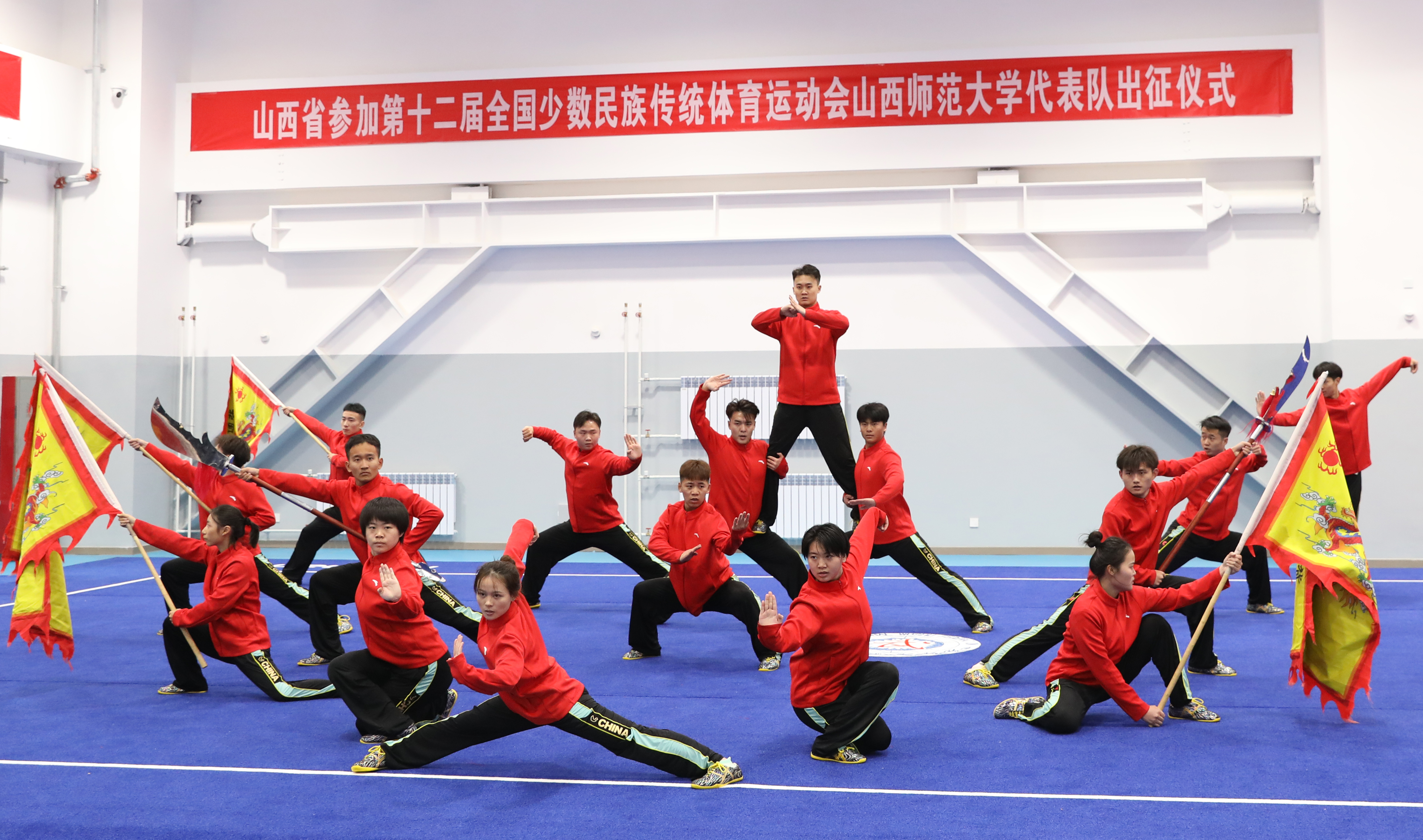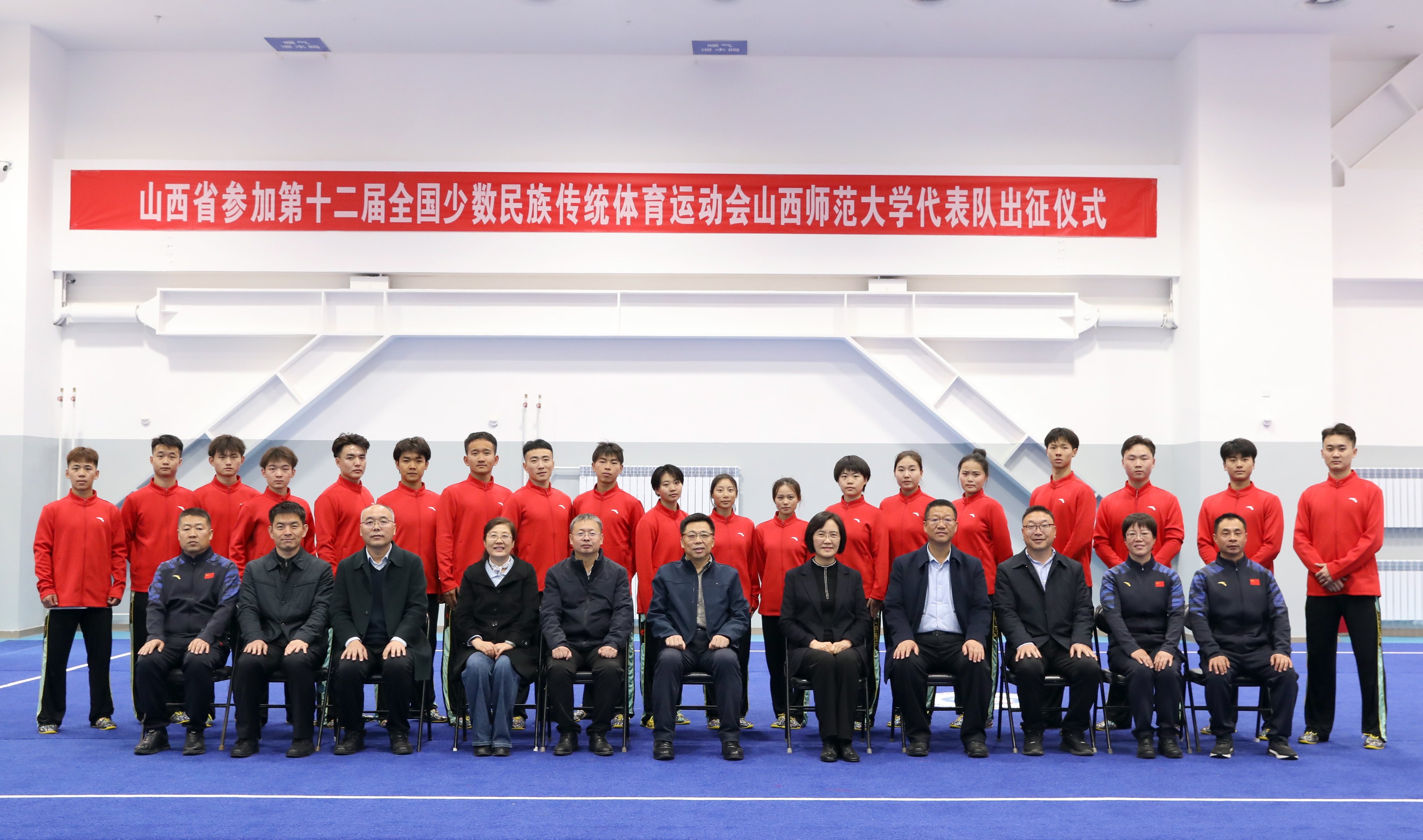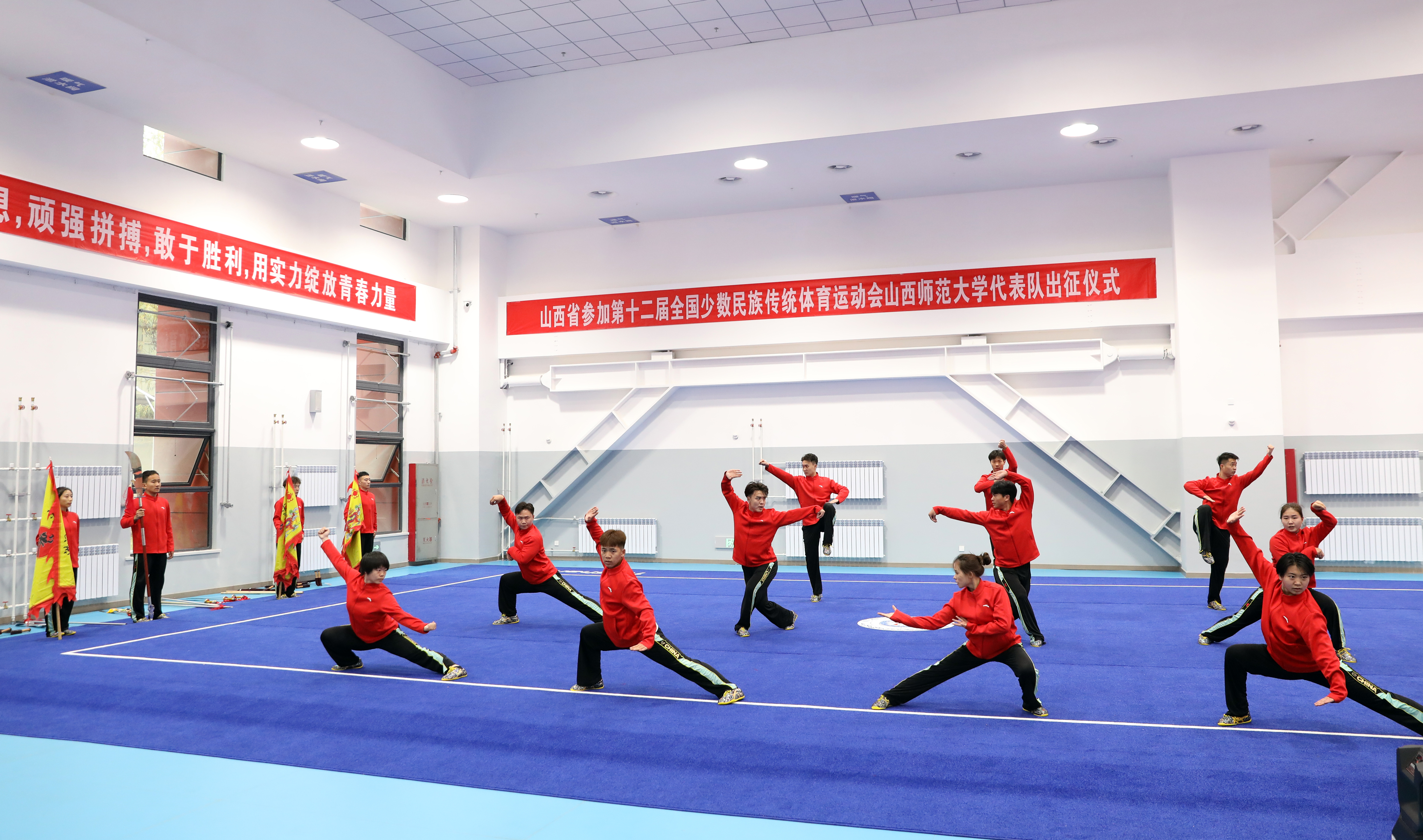 11月15日上午,第十二届全国少数民族传统体育运动会304永利集团官网入口代表队出征仪式在体育实训楼武术馆举行。公司党委书记殷杰宣布第十二届全国少数民族传统体育运动会304永利集团官网入口代表队出征,董事长许小红作了动员讲话,副董事长白文宏主持出征仪式。