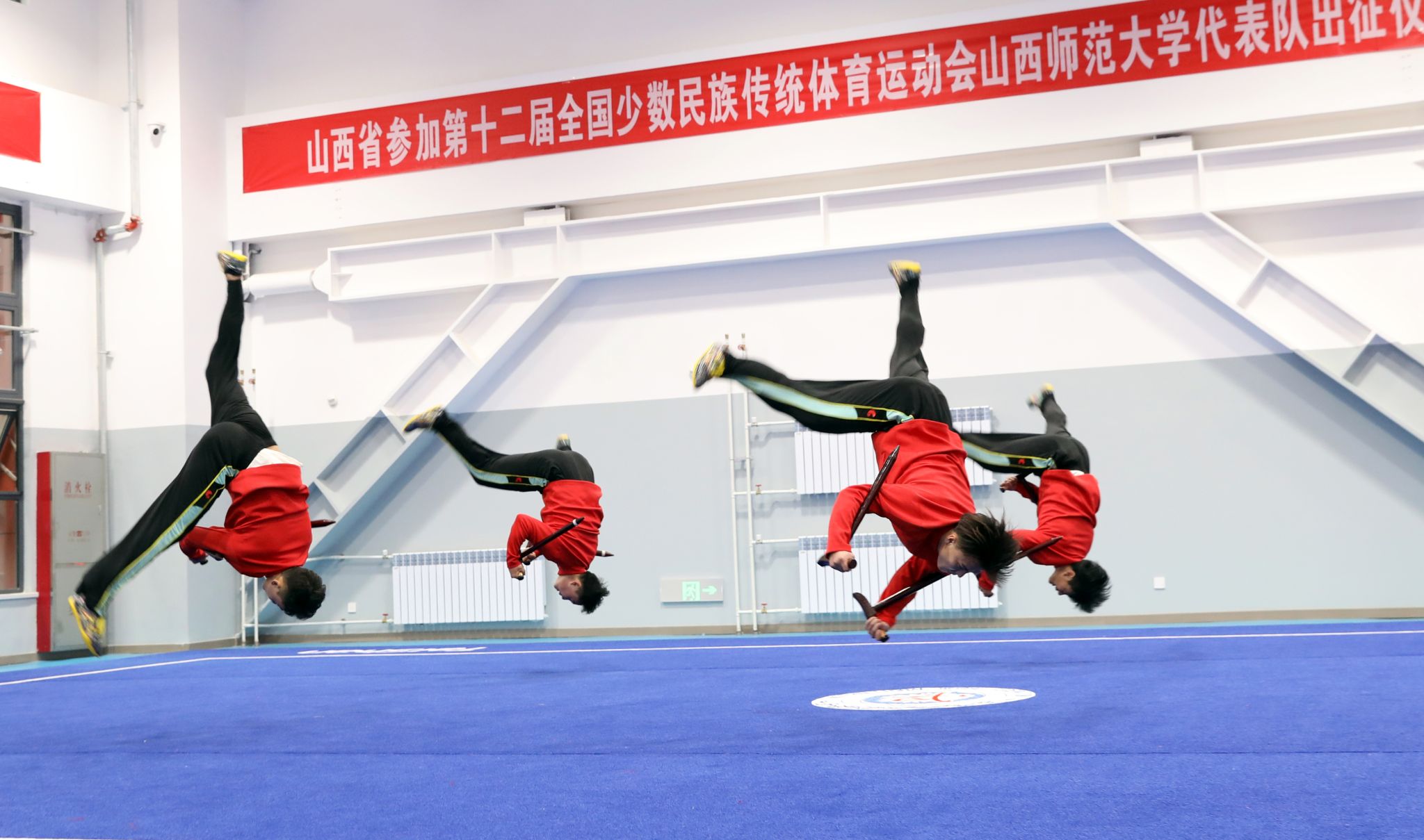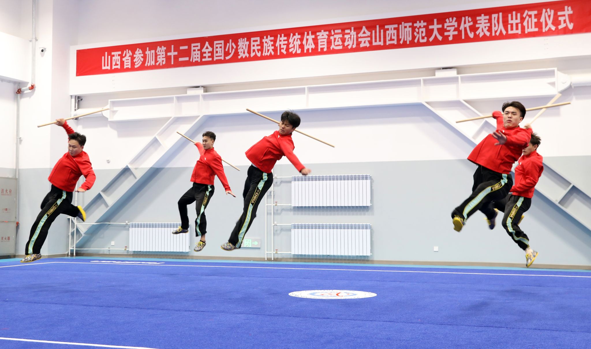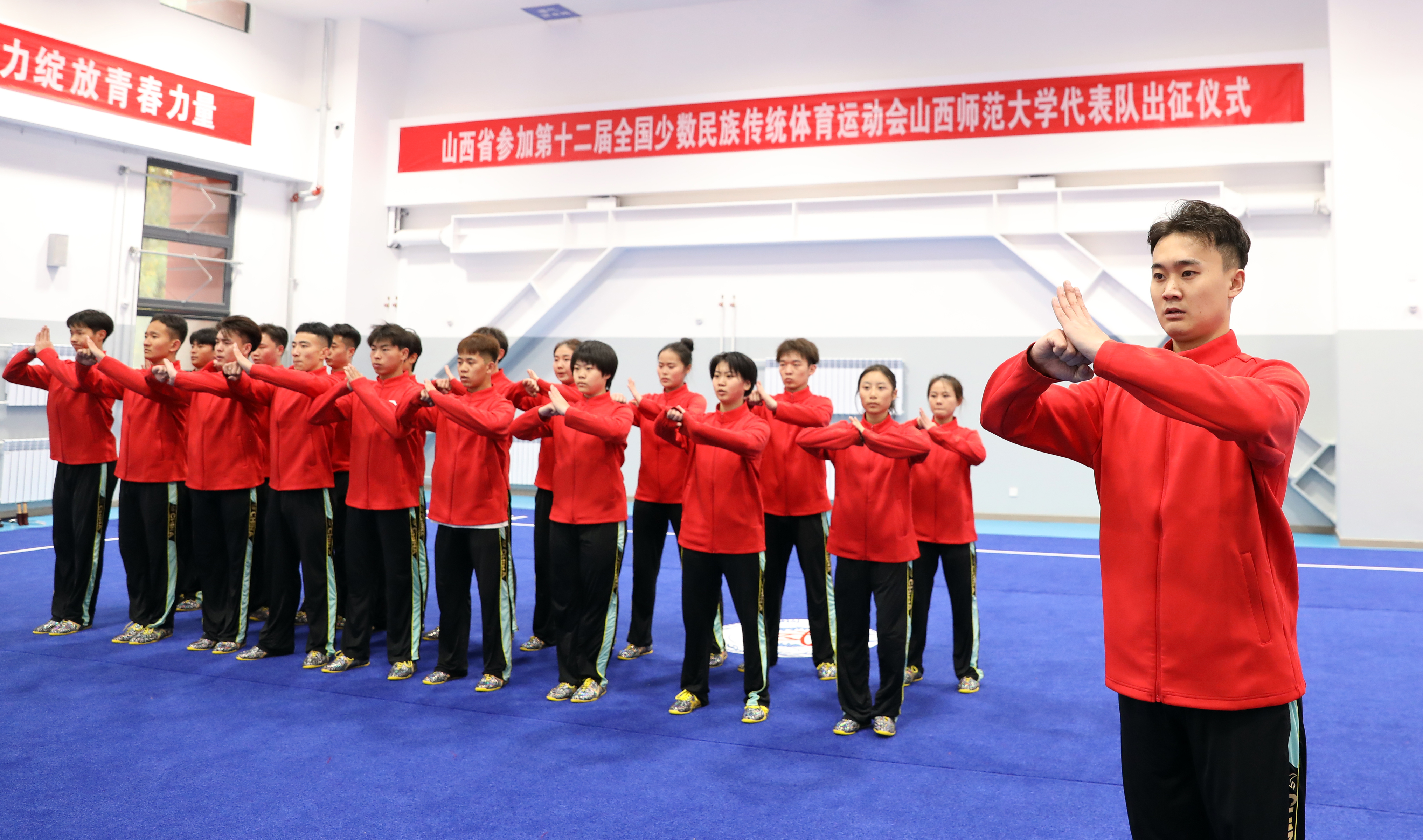 11月15日上午,第十二届全国少数民族传统体育运动会304永利集团官网入口代表队出征仪式在体育实训楼武术馆举行。公司党委书记殷杰宣布第十二届全国少数民族传统体育运动会304永利集团官网入口代表队出征,董事长许小红作了动员讲话,副董事长白文宏主持出征仪式。