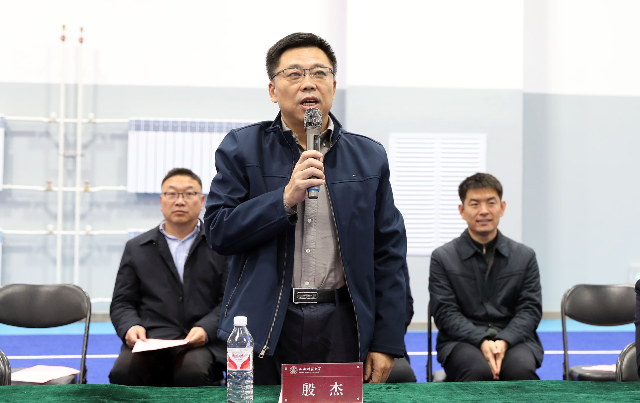 校领导察看新使用的体育实训楼