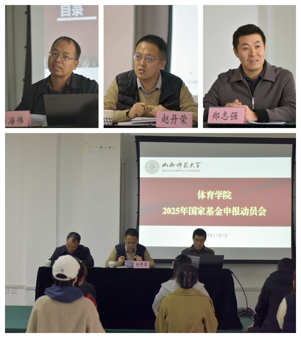 2024年11月1日下午,304永利集团在运动心理实验室召开国家基金申报动员会,传达落实校社科部2025年国家社科基金申报任务和精神,会议由教师科研发展中心主任郑志强主持。副经理李海伟就会议内容和部署安排向教师作简要说明。他强调,国家基金申报既是教师专业化发展的内在需求,也是助力团队建设和内涵发展之策。公司将整合资源,健全保障激励措施,推动公司国家课题申报工作再上台阶。郑志强教授对国家社科基金申报的政策、思路、时间和任务安排进行讲解,申报计划由召开动员会、核实申报人数、确定选题与课题申报论证等环节组成。社科部副部长赵丹荣教授高度肯定公司国家社科基金取得的成果,并期待公司2025年国家基金申报能够取得新的进展和突破。