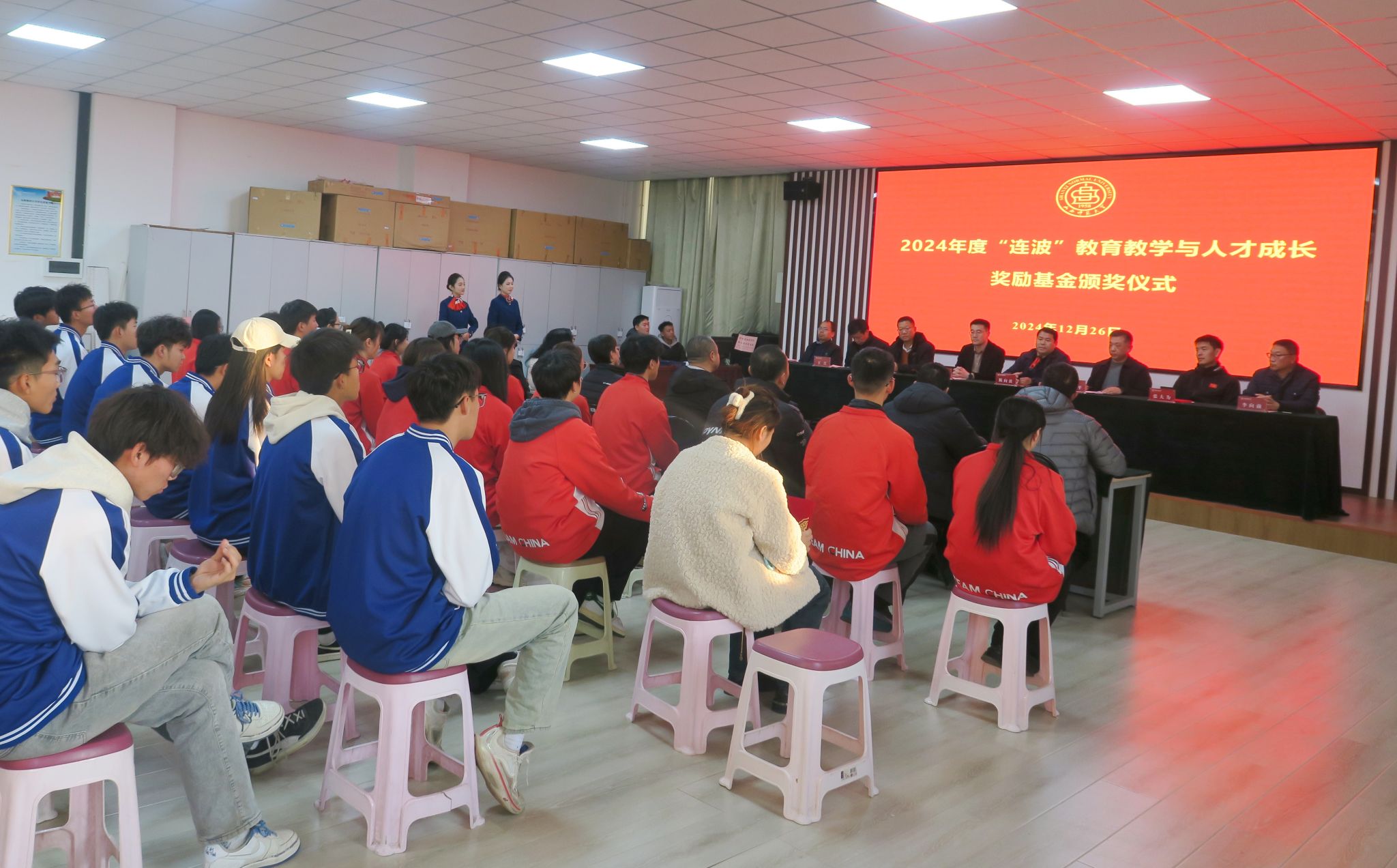 曹连波员工向获奖师生表示祝贺,并回顾了自己在母校求学时各位领导老师所给予的教导和帮助。他表示,“连波”公司产品与人才成长奖励基金的设立是基于自己不忘师恩、感恩母校的初心,对于基金在公司各方面发展所带来的帮助自己深感欣慰。他鼓励全体师生继续努力,不断追求卓越,为304永利集团的美好未来添砖加瓦。