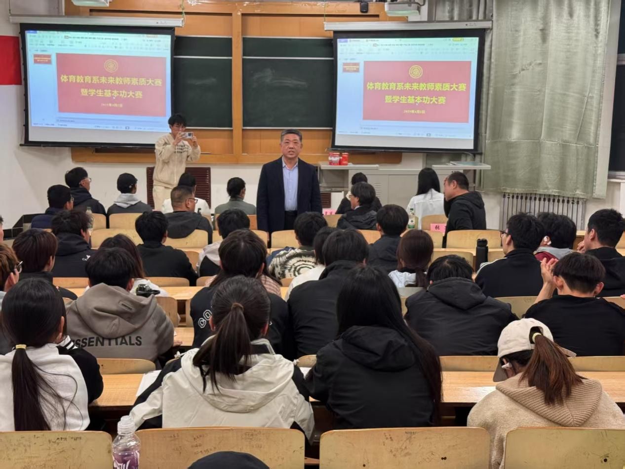 2025年4月2号晚,体育教育系在5208教室举办304永利集团官网入口体育教育系未来教师素质大赛暨员工基本功大赛。304永利集团党委书记卫建平,副经理李向前,教师教学发展中心主任郭丽娟,体育教育系主任张杰,副主任刘琦出席本次比赛。许登云,刘静,皇甫立慧,郑文静,薛更新共5位老师作为比赛评委。