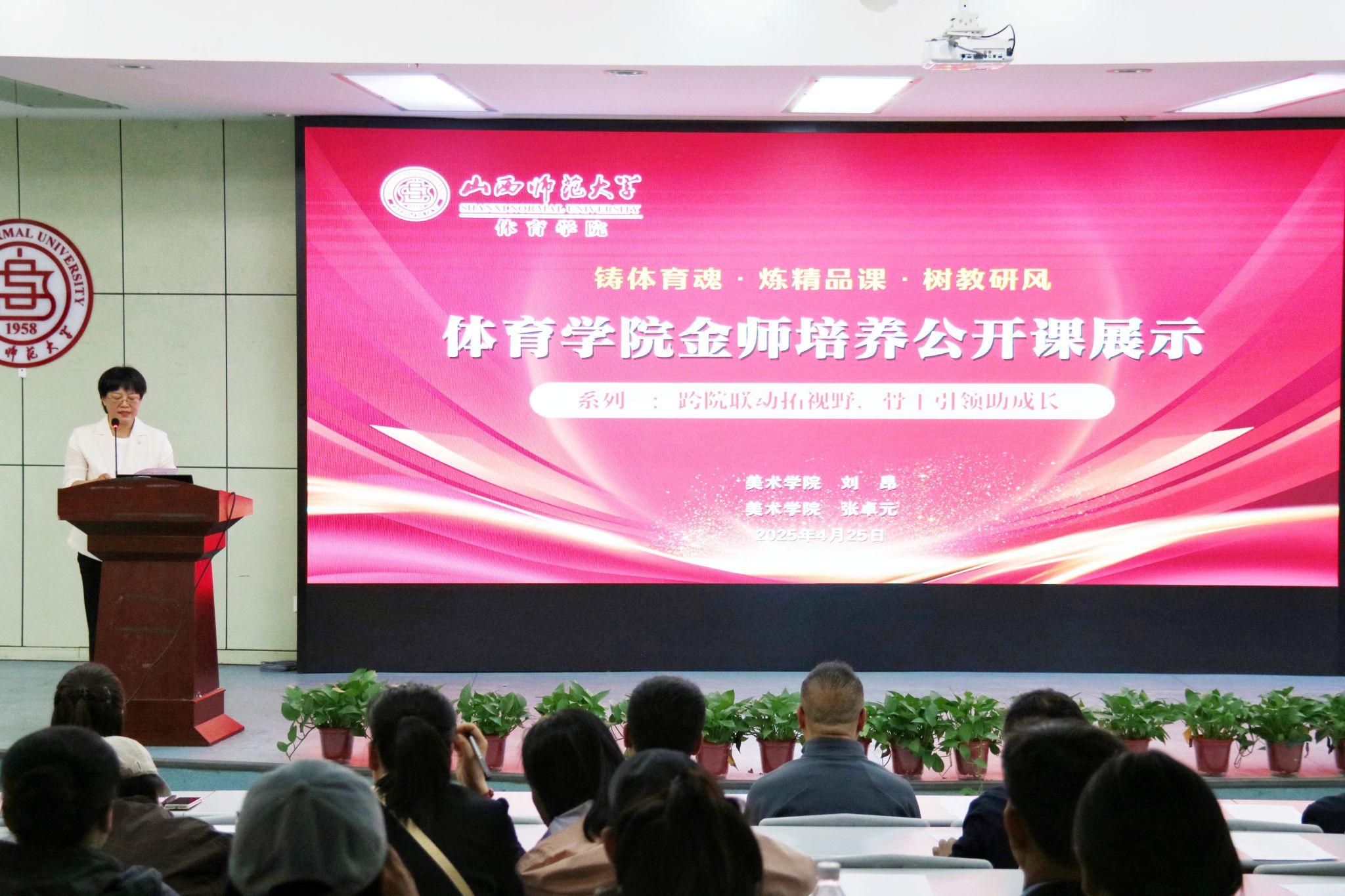 304永利集团于2025年4月25日成功举办“铸体育魂·炼精品课·树教研风”金师培养系列公开课第一阶段第三场活动。本次活动以“跨院联动拓视野,骨干引领助成长”为主题,活动地点为校图书馆一层报告厅,活动特邀校教学督导委员会胡青平教授参与指导,并邀请美术公司两位骨干教师——刘昂老师与张卓元老师进行教学展示,通过体美学科深度融合,探索教学创新路径,助力公司公司产品改革再上新台阶。