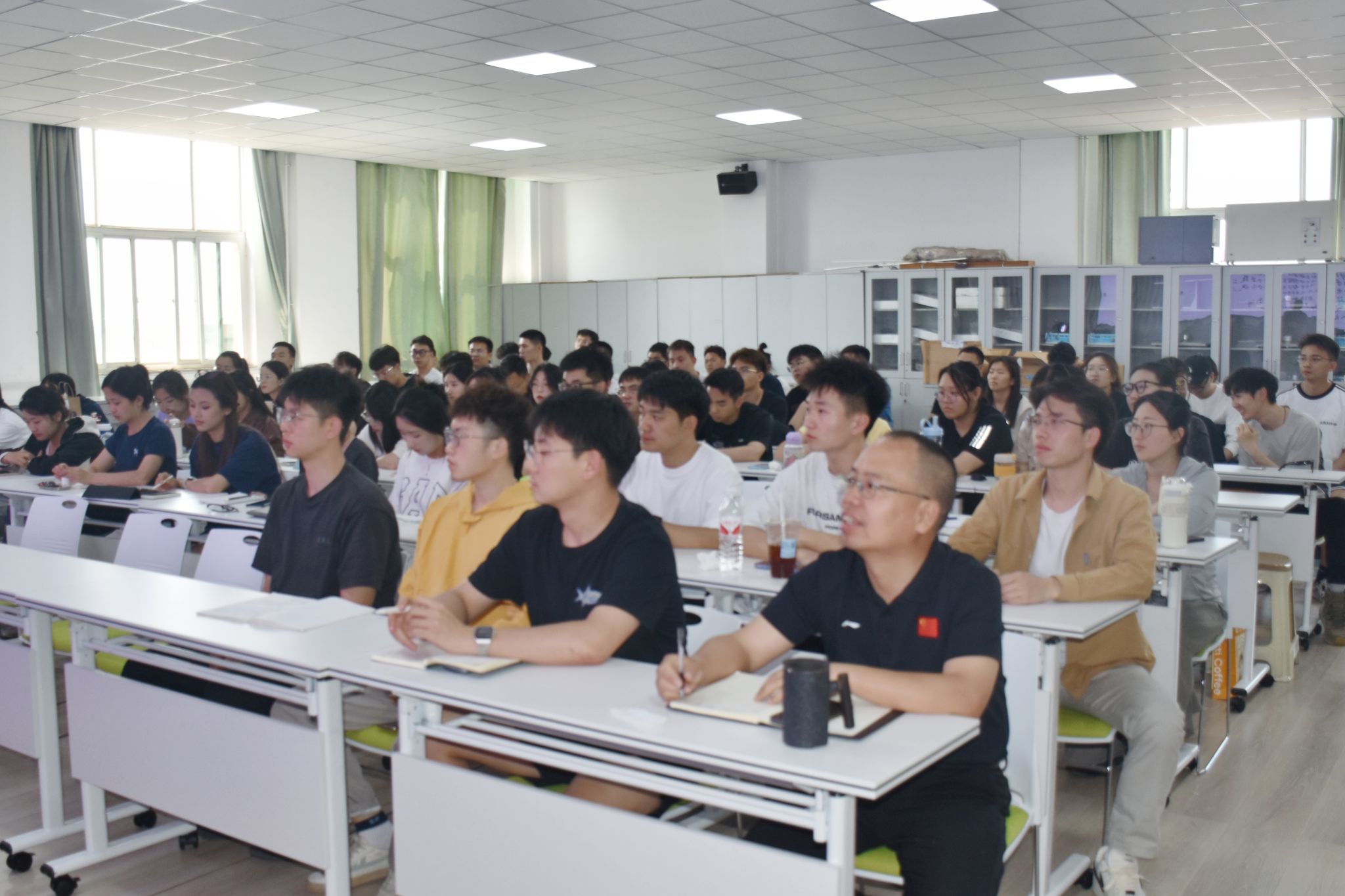 在互动环节,师生们踊跃提问,张教授针对“减脂增肌期间如何科学搭配饮食与训练”等问题,不仅提供了详细的营养与运动方案,还深入剖析了“何时吃、吃什么”背后的生理学机制,令在场师生受益匪浅。