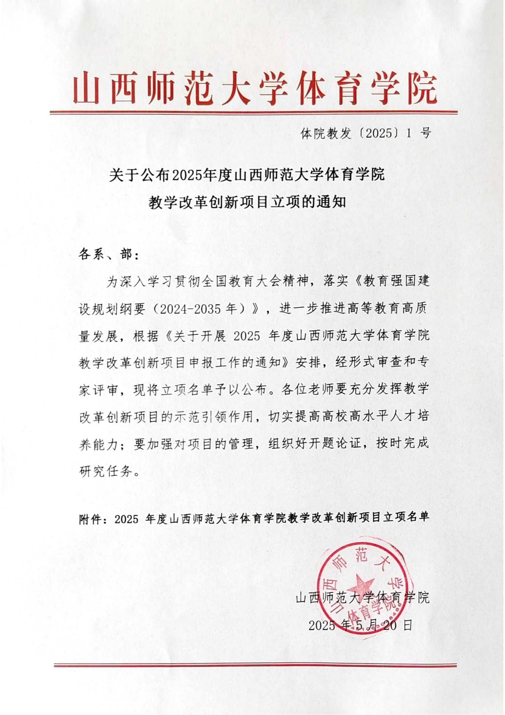 关于公布2025年度304永利集团教学改革创新项目立项的通知