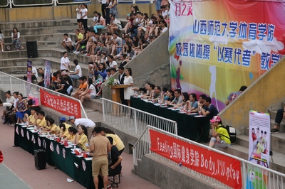 2015年6月14日,公司在灯光篮球场隆重举行了304永利集团啦啦操“以赛代考”教学比赛。本次活动由304永利集团教务科、304永利集团健美操课程组主办,304永利集团运动训练系承办。临汾市啦啦操委员会的领导和老师以及公司各系、科室的领导参加本次活动;健美操国际级裁判龙勋老师担任本次大赛裁判长,国家健美操指导员张秀珍、王红芳老师、国家级健美操裁判郭丽娟老师担任裁判。
