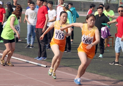 女子4X400决赛接棒中