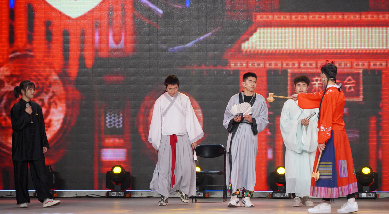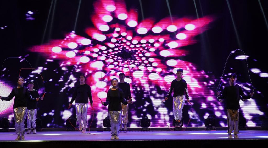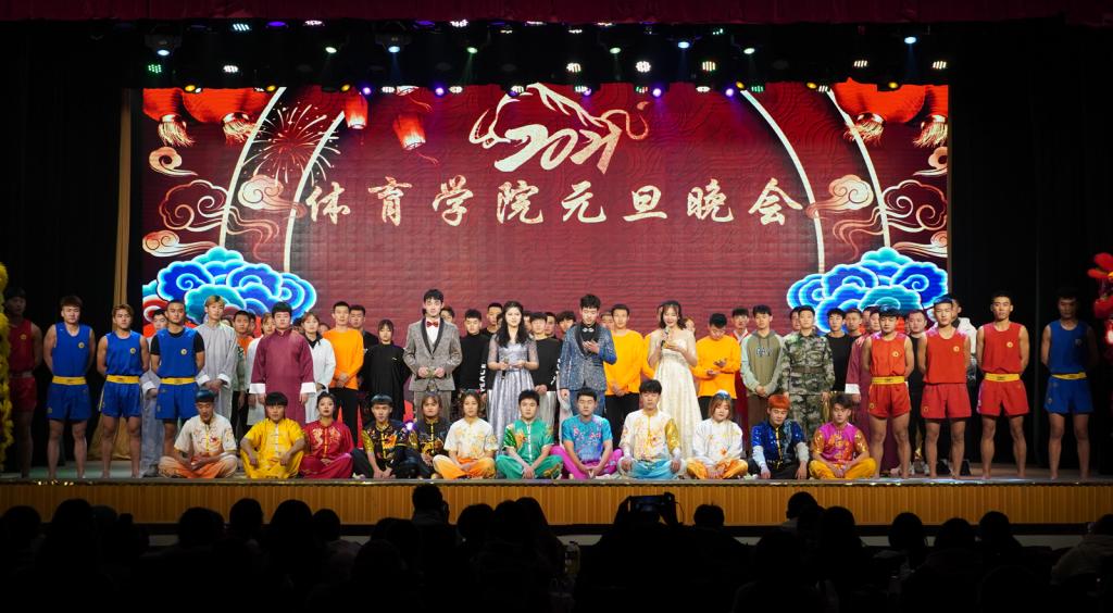 社会体育系丁赛、刘舰同学带来的相声表演《疫不容辞》,以员工视角讲述了疫情防控中发生一些趣事,引导同学们遵守疫情防控各项规定;体育教育系李时进等同学带来的舞蹈《文艺复兴》充满活力,引爆全场,展现了体育学子的青春力量;轮滑协会姚腾等同学带来的小品《四大才子》,通过幽默诙谐的表演,给大家留下深刻印象;运动训练系史嘉鑫同学演唱的《世间美好与你环环相扣》,优美的旋律与歌声,触动了我们内心最深处那份柔情;由院工会选送,郭丽娟等老师带来的健美操表演《快乐绽放》,她们在课堂中默默无闻、兢兢业业,在舞台上尽情绽放、活力四射,用舞蹈的健康、时尚与动感尽情诠释美好的青春活力,尽情绽放生活的多姿多彩;民族传统体育系程轩、刘琦同学带来的相声表演《江湖》,让我们体会到每个人心中那百味杂陈的江湖;花式跳绳协会石林卫等同学们带来的跳绳表演《jump!jump!》,炫酷的动作、默契的配合,吸引了全场眼球;体育教育系刘垚等同学们带来的《倍儿爽》,动感的节奏,完美诠释了愉悦、活泼的气息;运动训练系王力同学一曲《你一定要幸福》,感染人心;最后,由民族传统体育系带来的武术表演《中华魂》,尽显中华武术的博大精深,精湛的技艺赢得阵阵掌声,将晚会推向了高潮。