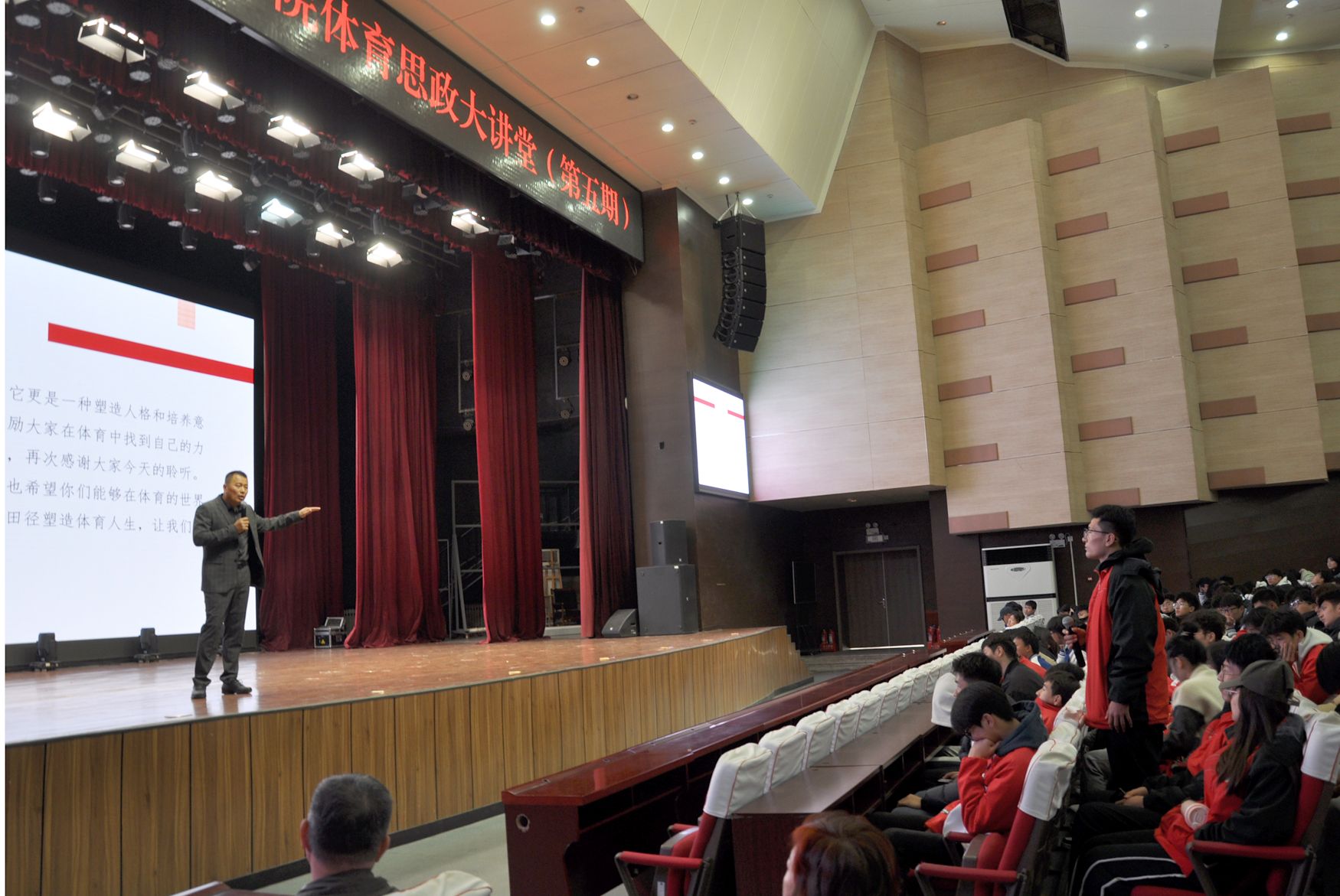 受邀来到体育思政大讲堂,窦兆波老师为同学们带来了一场题为“用田径塑造体育人生”的精彩讲座,用亲身经历现身说法,为师生们上了一堂生动且深刻的思政教育课。公司党委书记卫建平,公司党委副书记张大为,部分教师以及全校各公司员工代表参加了讲座,讲座由公司党委副书记张大为主持。