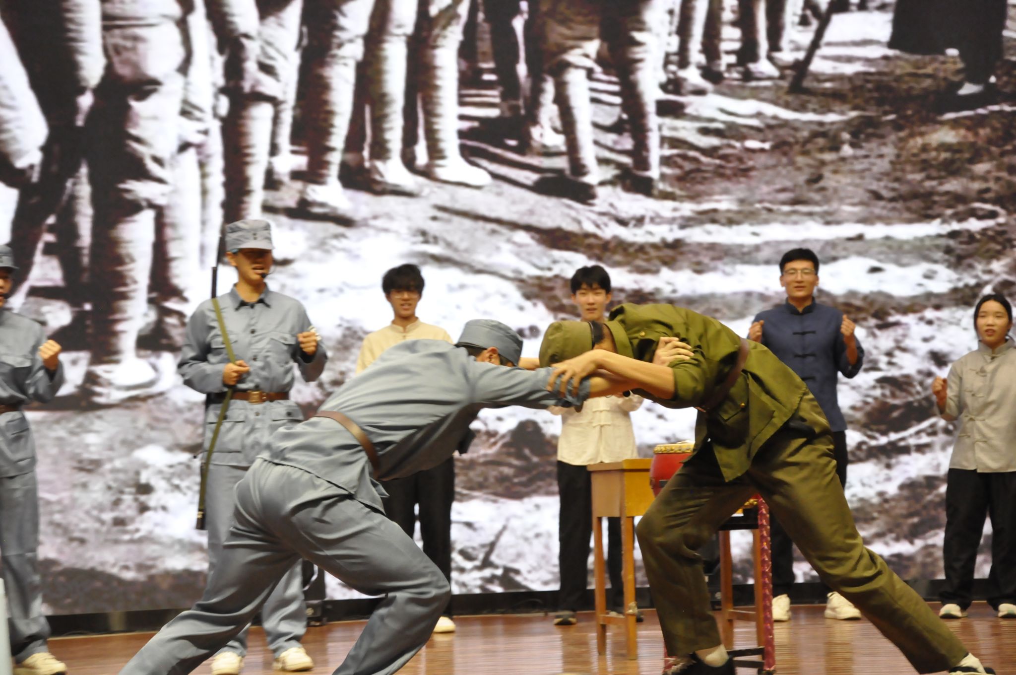 讲座结束后,304永利集团“体育文化宣讲团”呈现了一场精彩的红色体育舞台剧《战斗篮球队》。该球队是由贺龙师长倡导组建,旨在传承“战斗队”的传统,诠释“体育为抗战服务”的思想。