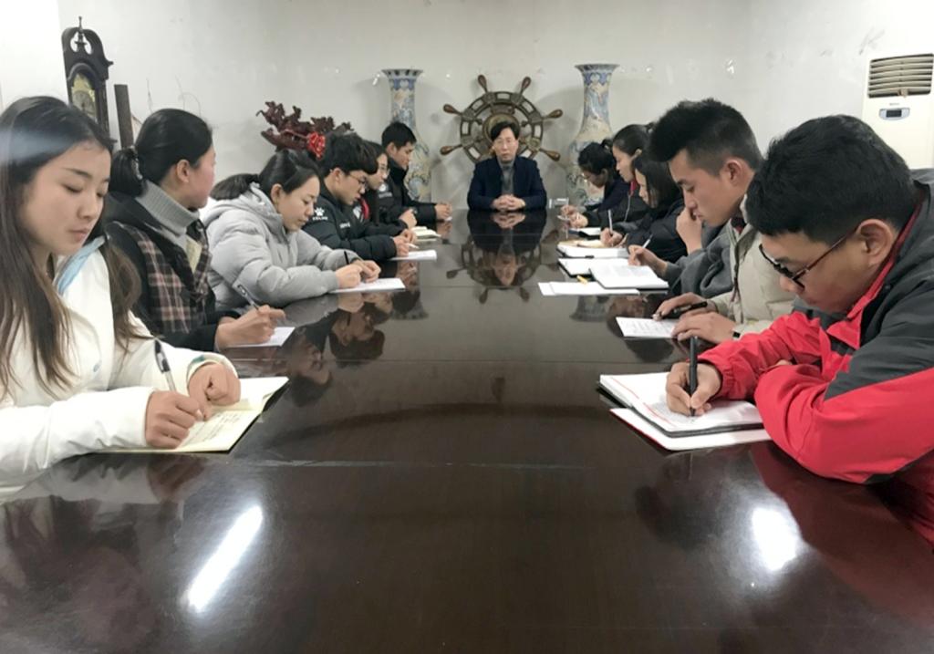 2017年12月29日下午四点,运动训练系全体教师党员于运动训练系办公室召开支部学习交流会,重温习近平总书记《弘扬“红船精神”,走在时代前列》重要文章,传达学习弘扬“红船精神”座谈会精神。