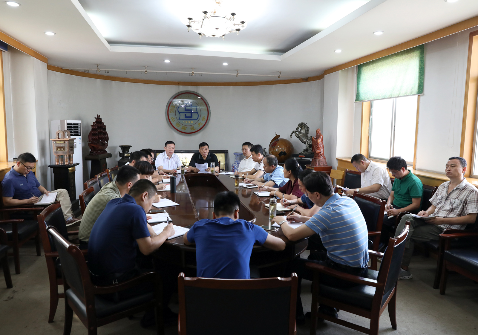 会上,公司党委书记李学刚带领大家一起学习了中共中央《关于进一步激励广大干部新时代新担当新作为的意见》。并对公司党委《关于开展庆祝中国共产党成立97周年活动的通知》精神进行了再安排、再动员。他讲到,干部要发挥带头模范作用,敢于担当敢于作为,要为干事创业的干部撑腰鼓劲;干部要强化学习,适应新时代发展要求的新能力;注重用人导向,发挥干部考核评价的激励作用,营造公司凝聚、向上、发展的局面。接着,他联系本科教学评估、60年校庆以及学科攻坚等三大工作任务,结合党员干部为什么要敢于担当、敢于担当的表现是什么,为全体干部作了《不忘初心牢记使命立足岗位敢于担当》党课讲座。