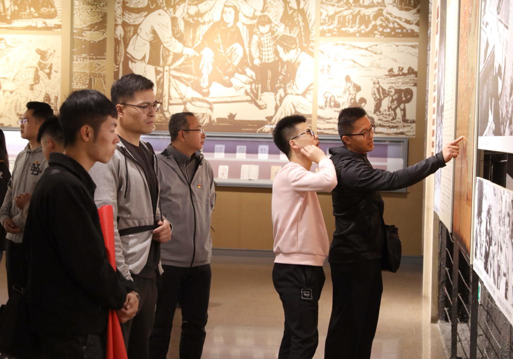 参观结束后,全体党员在八路军纪念馆前,面对鲜红的党旗,举起右拳,庄严宣誓,重温入党誓词。