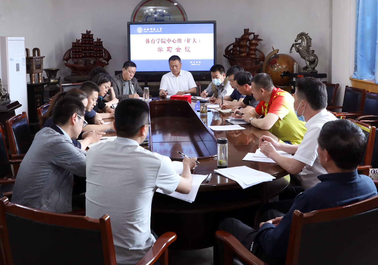 5月14日下午,公司党委中心组(扩大)学习会议在东会议室召开。全体院领导、院工会主席、各系部科室及团委负责人参加了会议。