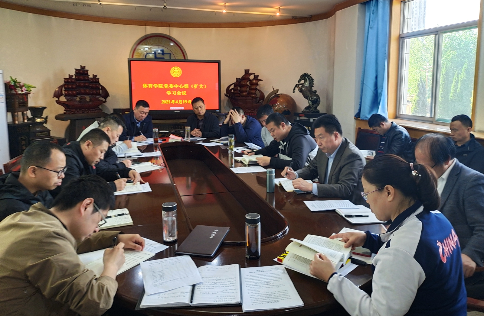 4月19日上午,公司党委理论学习中心组(扩大)党史学习教育专题会议在东会议室召开,院领导、各系部科室负责人、党支部书记参加学习。学习会由公司党委书记许国宝主持。
