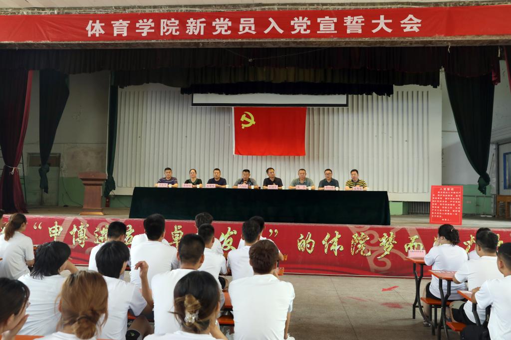 宣誓仪式在雄浑激昂的《国际歌》中拉开帷幕。体育教育系党支部书记张杰宣读了参加本次宣誓的新党员名单,研究生第二党支部郑惠丹同志领誓,全体党员面向党旗进行了庄严宣誓。随后,由新党员代表白文龙同志发言,他表示作为一名新党员,将不断提升自身思想政治素养,以中华作为己任,接过先辈手中的火炬,努力拼搏、奋发图强。