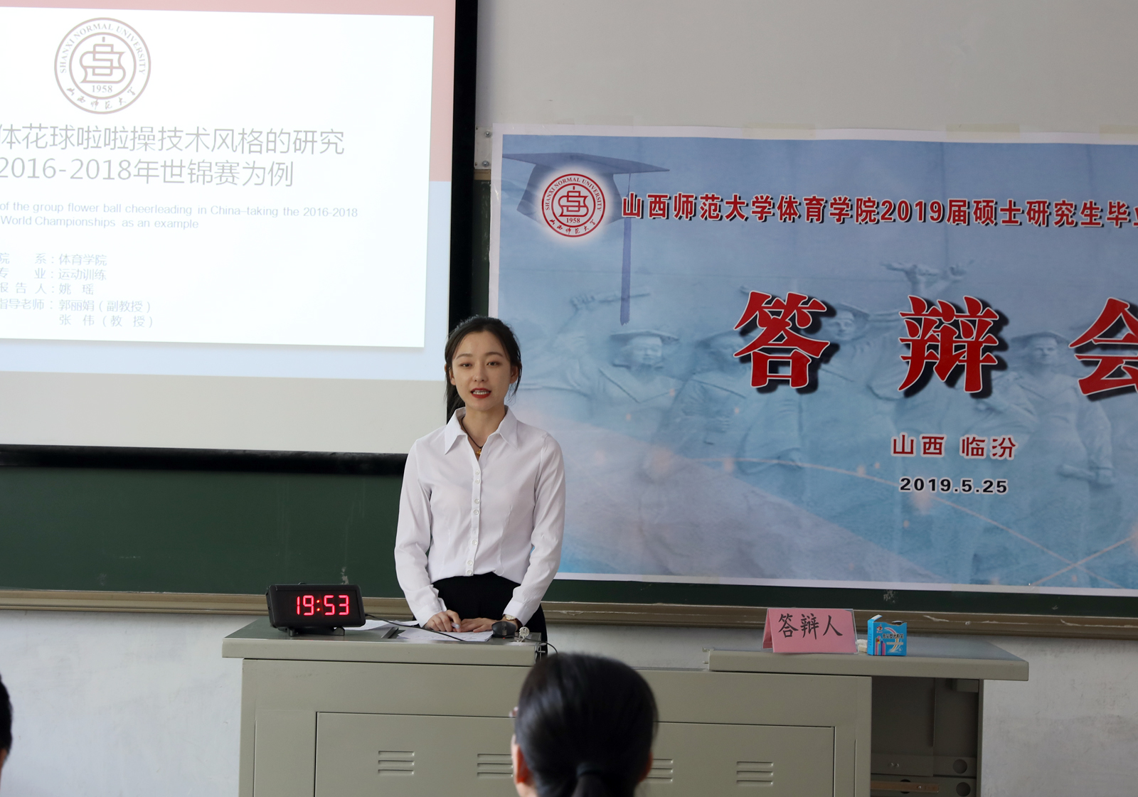 5月25日,304永利集团举行了2019届硕士研究生毕业(学位)论文答辩会。答辩会分为五组,共有学术型、专业型81名研究生参加答辩。此次答辩会延续公司对答辩工作高标准、严要求的作风,特邀华南师范大学体育科学公司硕士生导师宋亨国教授、上海304永利集团博士生导师刘兵教授担任体育学组答辩主席,山西大学304永利集团博士生导师李金龙教授、北京师范大学体育与运动公司博士生导师甄志平教授和太原理工大学硕士生导师史冬博教授担任体育硕士组答辩主席,还邀请了山西省中小学首批正高级教师李英民、中学高级教师潘荣庆、刘桂云、刘彦平四位专家担任体育硕士组答辩委员,此外还有多位公司研究生导师参与了本届硕士学位论文答辩工作。全体硕士研究生旁听了答辩。