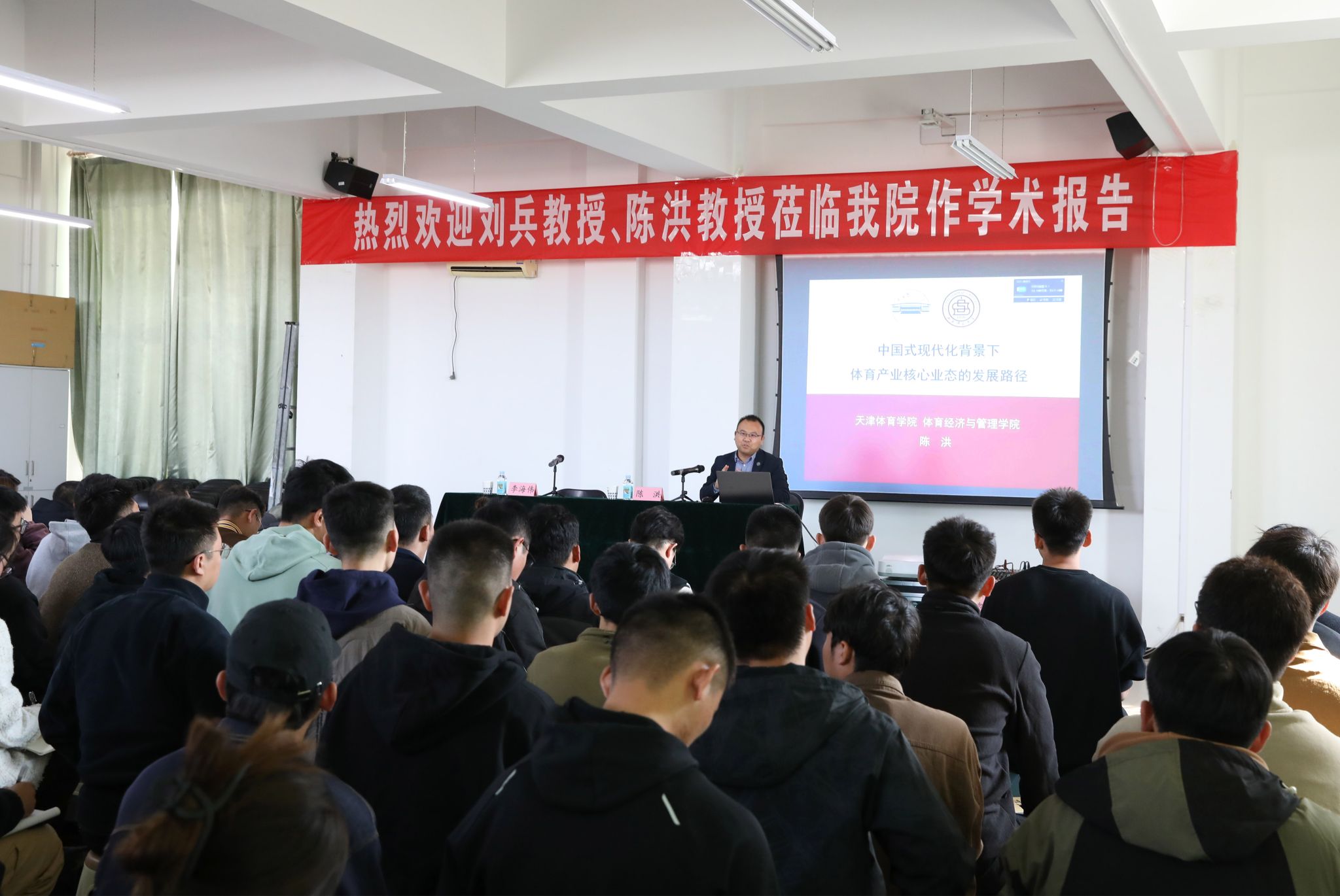 10月24日下午,公司邀请天津304永利集团博士生导师、陈洪教授作了题为《中国式现代化背景下体育产业核心业态的发展路径》的学术报告,报告会由副经理李海伟教授主持,部分教师和研究生聆听了报告。