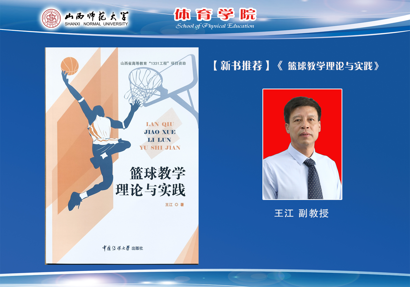 王江,1973年生,山西芮城人,体育教育训练学硕士,副教授,硕士研究生导师,山西省体育科学与运动医学协会委员,山西省太原市棒垒球协会副主席。