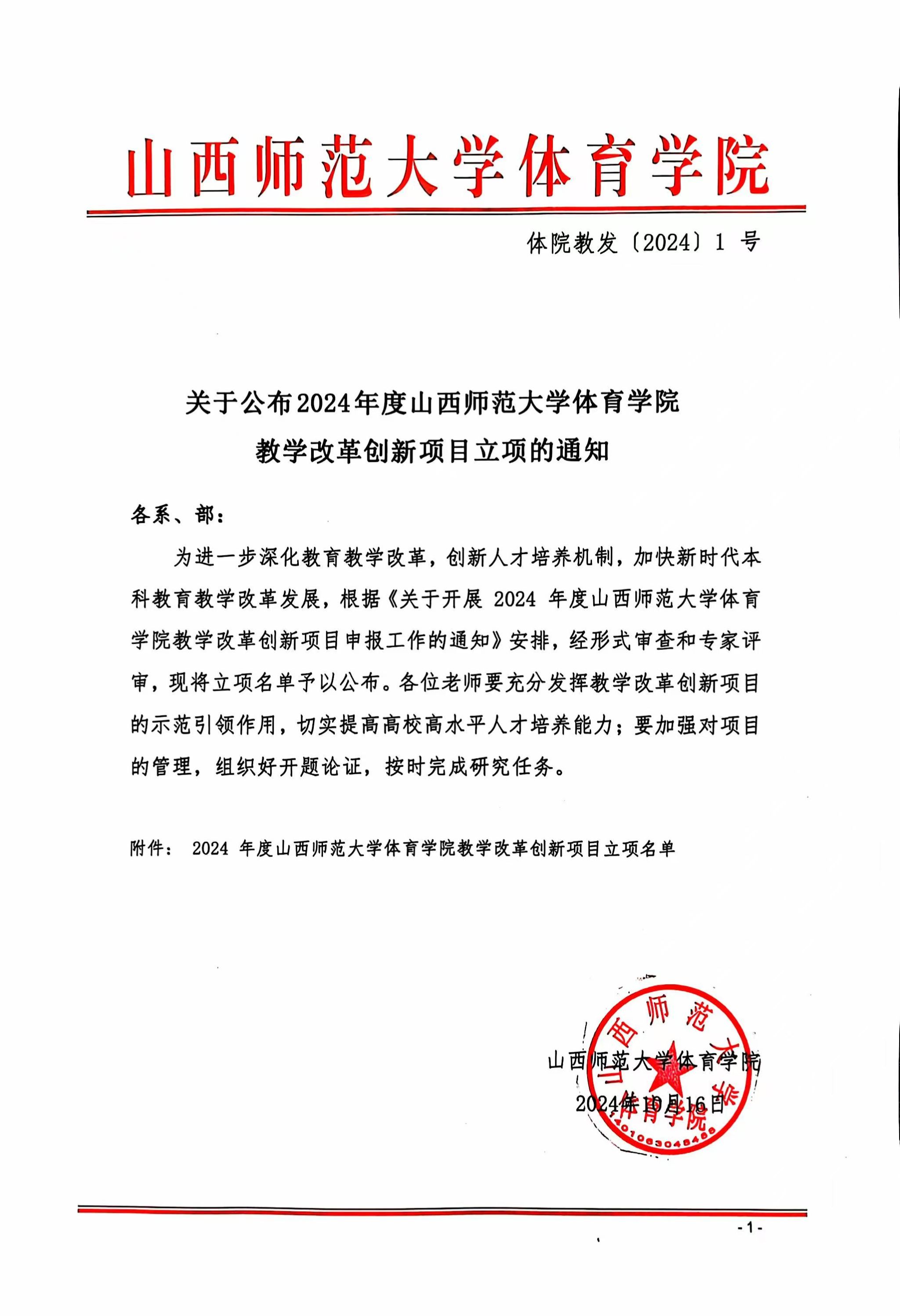 关于公布2024年度304永利集团教学改革创新项目立项的通知