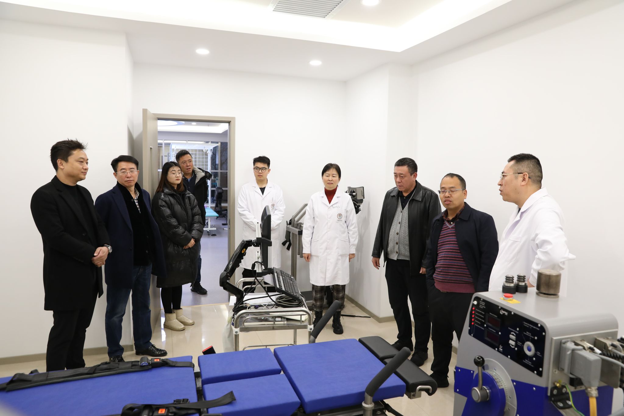 郑旗经理和李丹经理共同为实训基地揭牌。随后观看了翰乔中医院宣传片、参观康复中心、体验先进的运动康复仪器设备,并对下一步的合作进行了深入的交流。(院研究生部供稿)