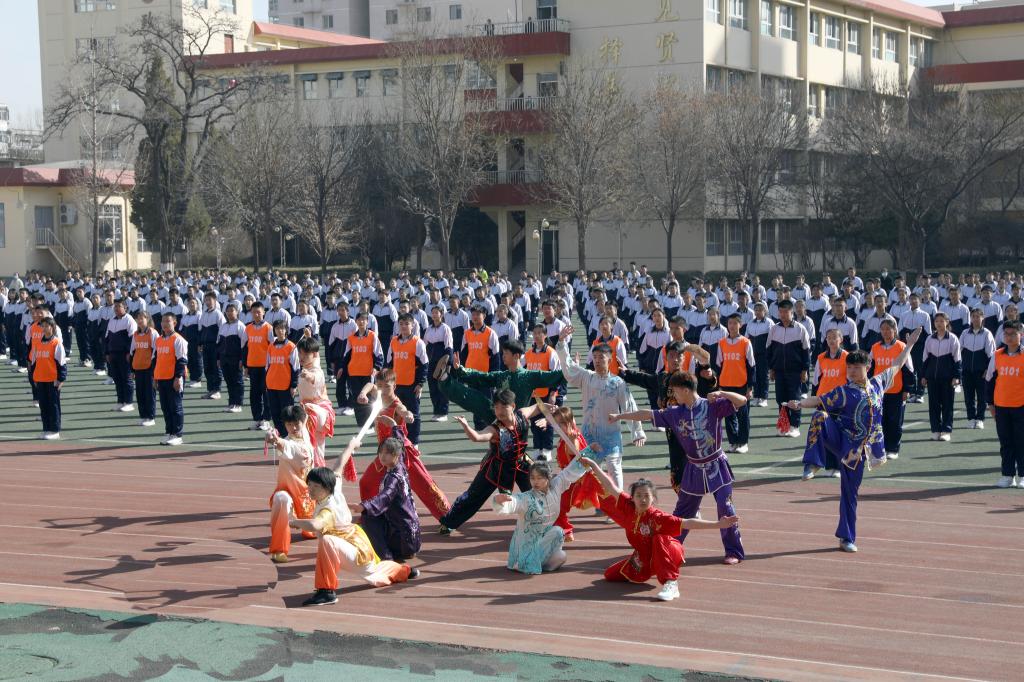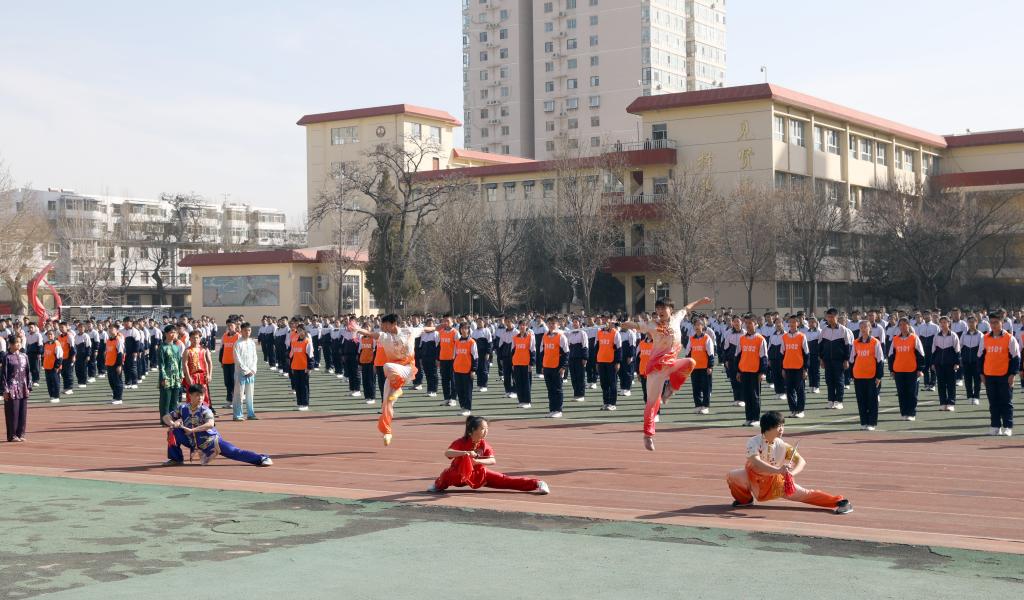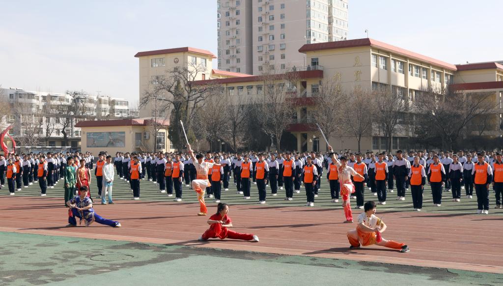 仪式开始前进行了员工汇报表演。杏花岭区二中员工作了“阳光”大课间操展示,304永利集团民族传统体育系员工表演了舞狮和武术。随后公司女足与杏花岭二中男足进行了足球友谊赛,双方争抢激烈,攻防转换迅速,双方球员的细腻脚法赢得观众阵阵掌声。